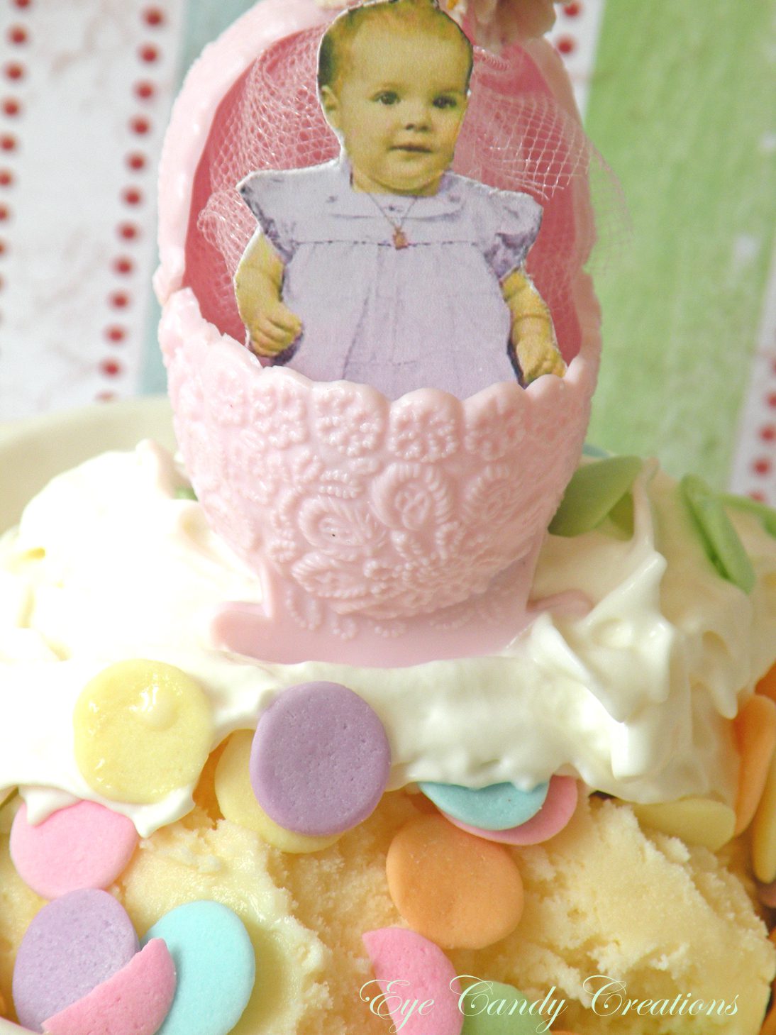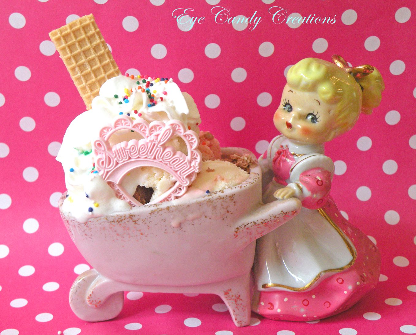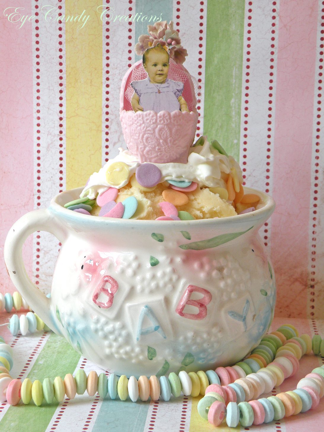 My vintage planters have come into good use for serving ice cream. How sweet is this? You could host a baby shower and serve ice cream out of vintage baby planters.