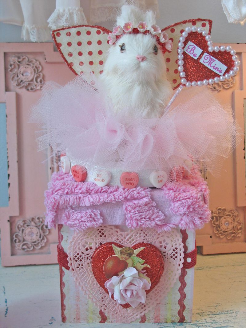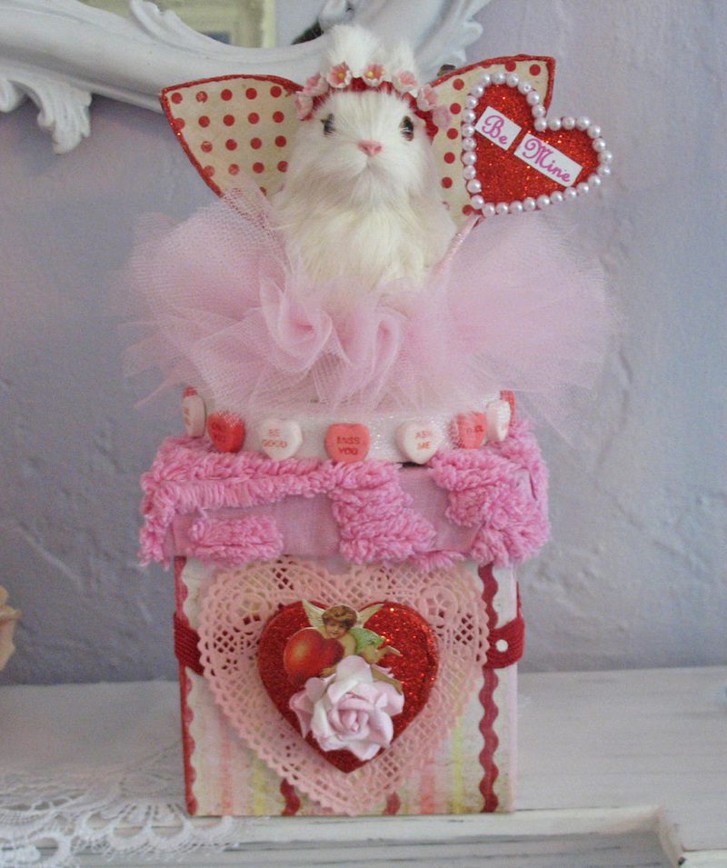 I already have the Valentines Day bug, and recently made this SUPER SWEET Valentines Day bunny fairy keepsake box. She is the "Be Mine" Fairy bunny, and she is adorned with candy sweethearts. She is available in my Etsy shop.