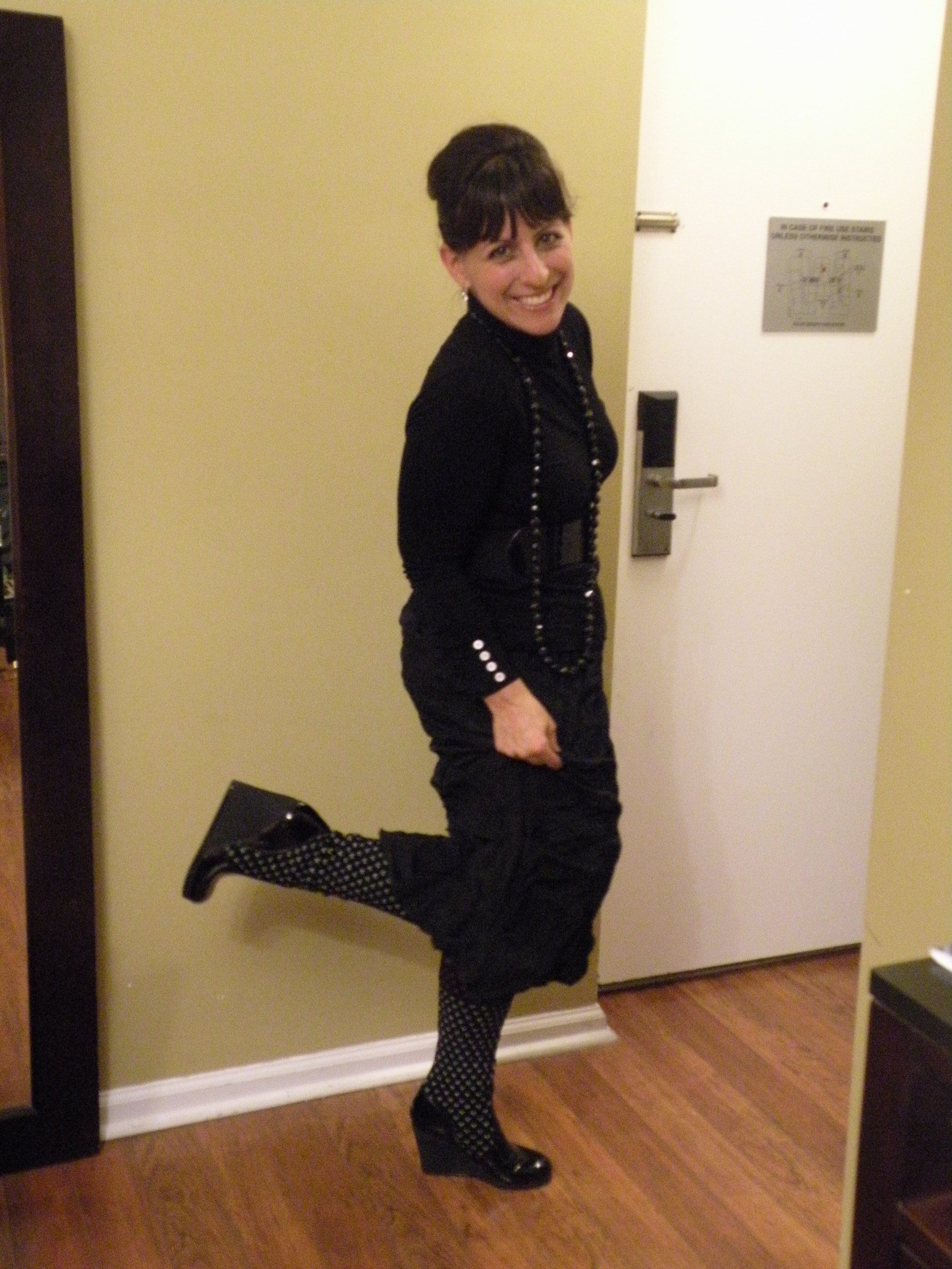 I have to share this one adorable shot of Natahsa. We were getting ready for a night out on the town. She was showing off her new FABULOUS Betsey Johnson boots. We had just shopped her store in which I bought a gorgeous coat, and she purchased these fun boots!