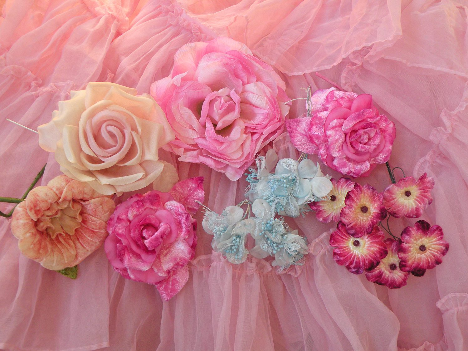 I bought some beautiful floral millinery. There were so many to choose from. I was a kid in a candy store. These are my little beauties.