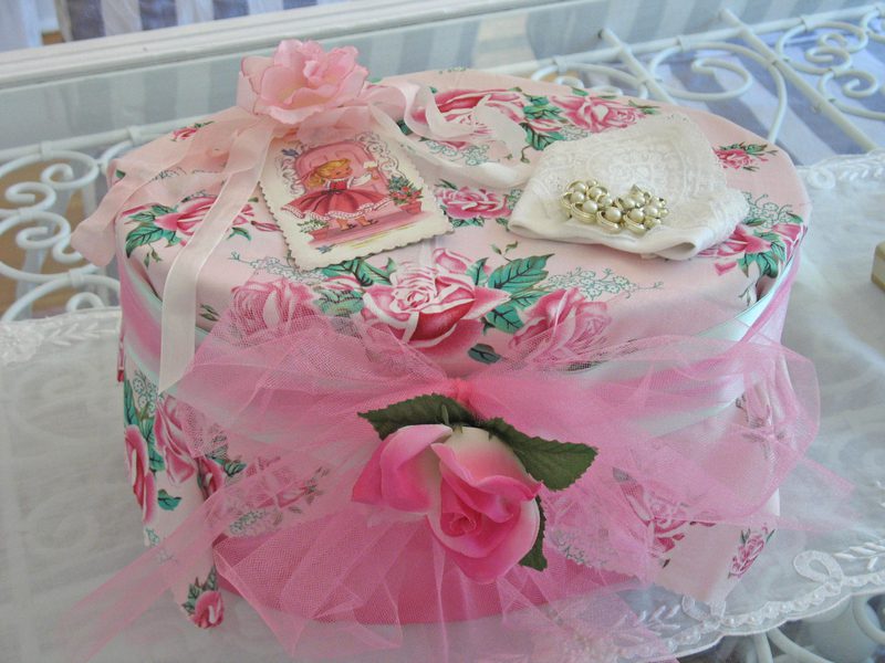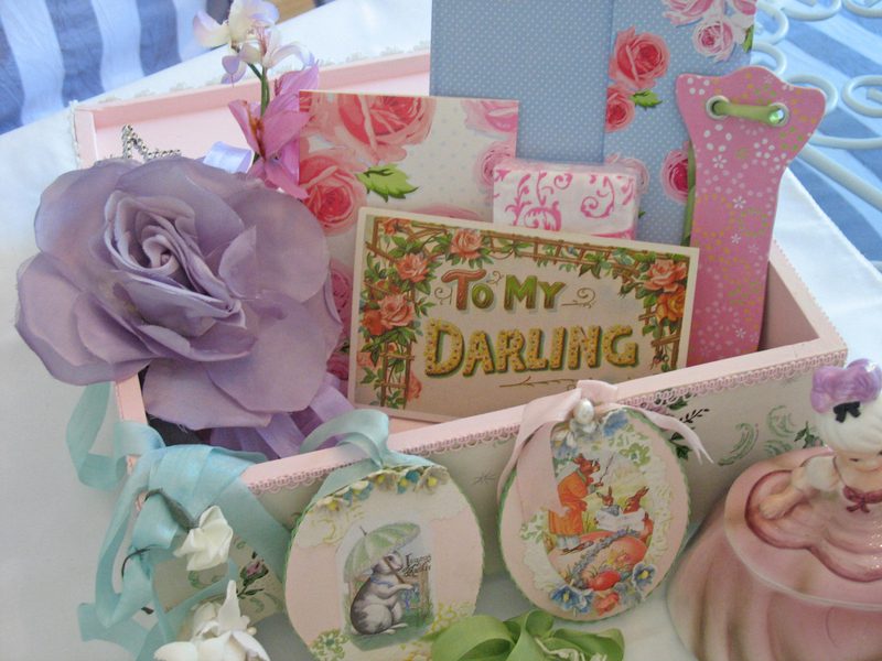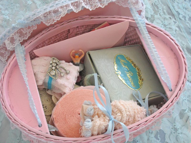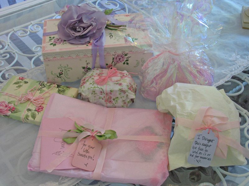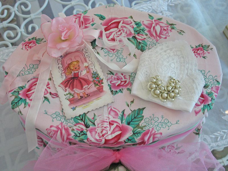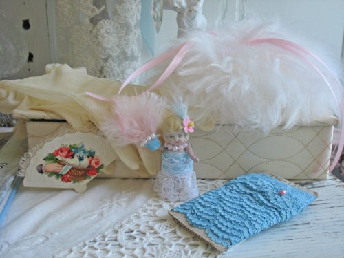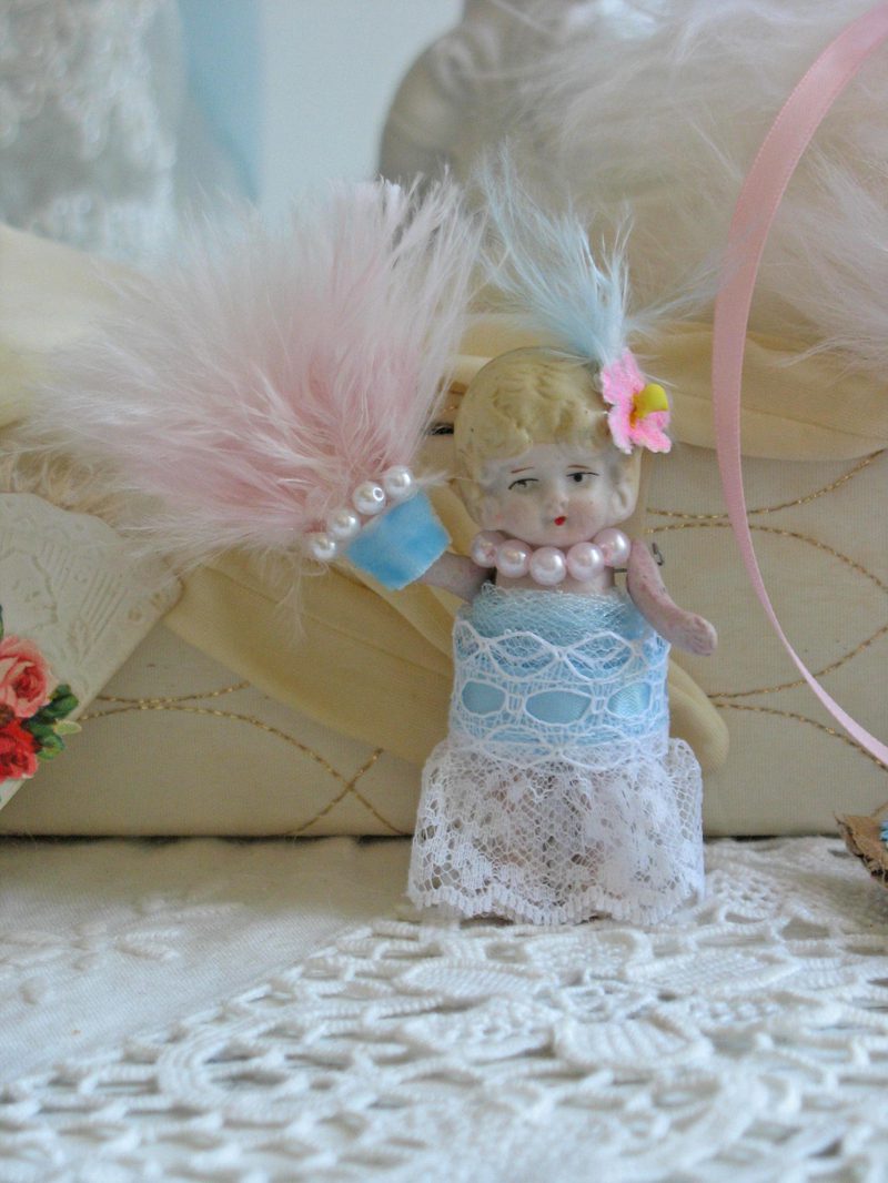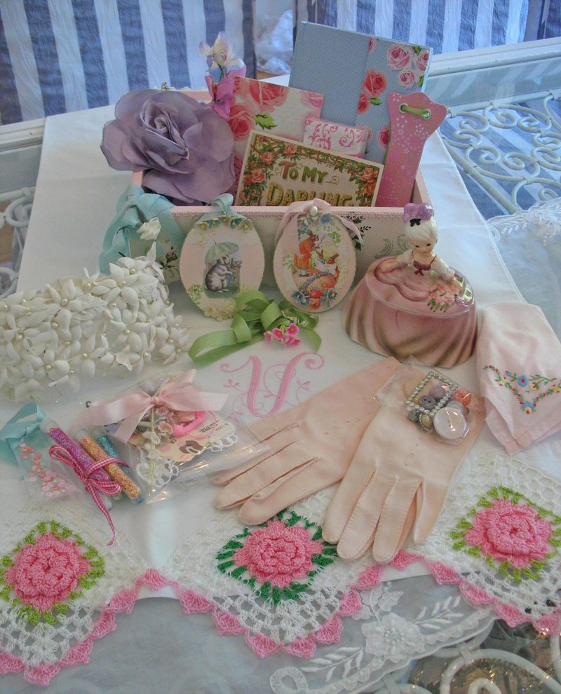 Your junque in my trunk swap gifts that you sent are SO SO pretty and feminine… what a great box of junque! and the ones Analise sent you were perfect for you. That little girl and pillowcase are just TOO cute. AND I LOVE my sweet gift you sent to me. YOu were so sweet and thoughtful to do that. I am so excited to have one of your little dolled up dollies. Thank you!!