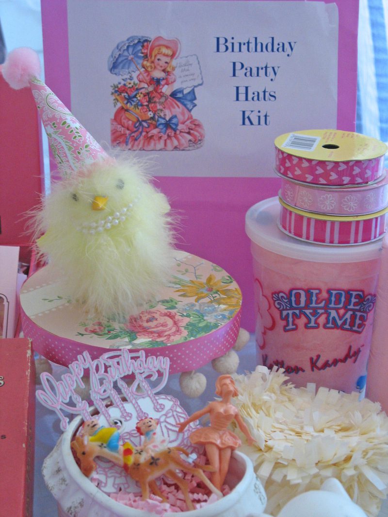 Heather had a HUGE bag of all the trims and goodies to make PARTY HATS! Chick it OUT!!!! hee! hee!