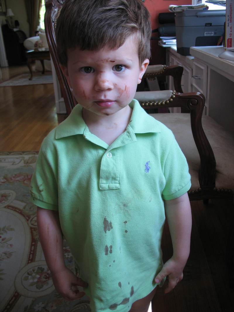 I CANT resist showing you this next picture that I took today. My son TOTALLY takes after me. Im a HUGE chocolate lover! I literally have to have at least a small piece of chocolate a day. Hence the gumball machine in my kitchen full of peanut M&M’s. Anyhoo, I bought the small single cups of chocolate ice cream for my son to have as a special treat. This afternoon he sits at his little table in the kitchen to enjoy his ice cream. Meanwhile, Mommy is busy surfing the net and Flickr. ๐ All of a sudden I look up from my computer to see this little dirty boy covered in chocolate!