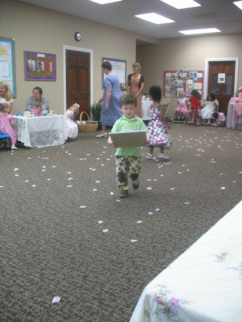 All the children made a present for their Mommies. Here he is his bringing me my gift. Notice the faux sprinkled rose petals on the floor! Sweet touch!