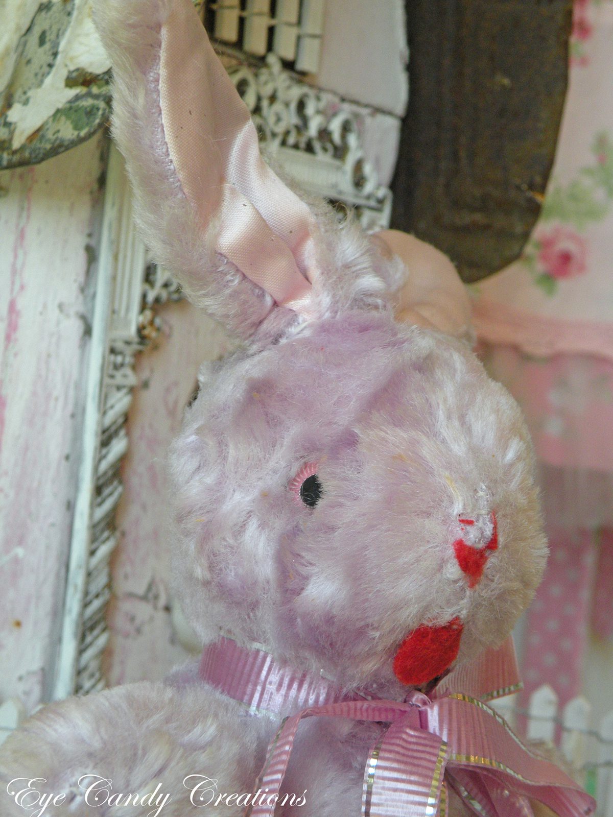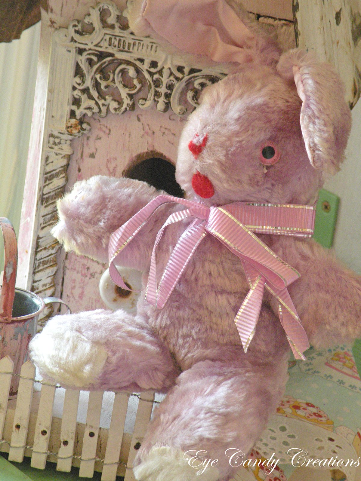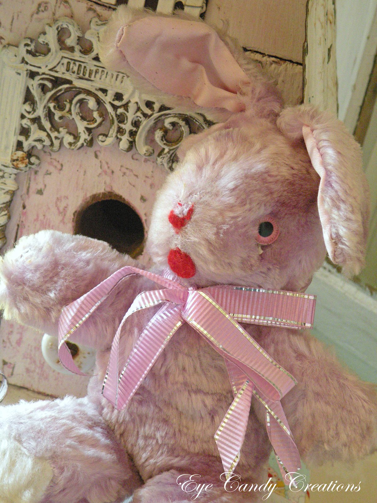 I wonder if this little vintage bunny foo foo ever had a name?? Well… In keeping with the Easter theme I think I will name this adorable cuddly bunny "Jellybean". :)
