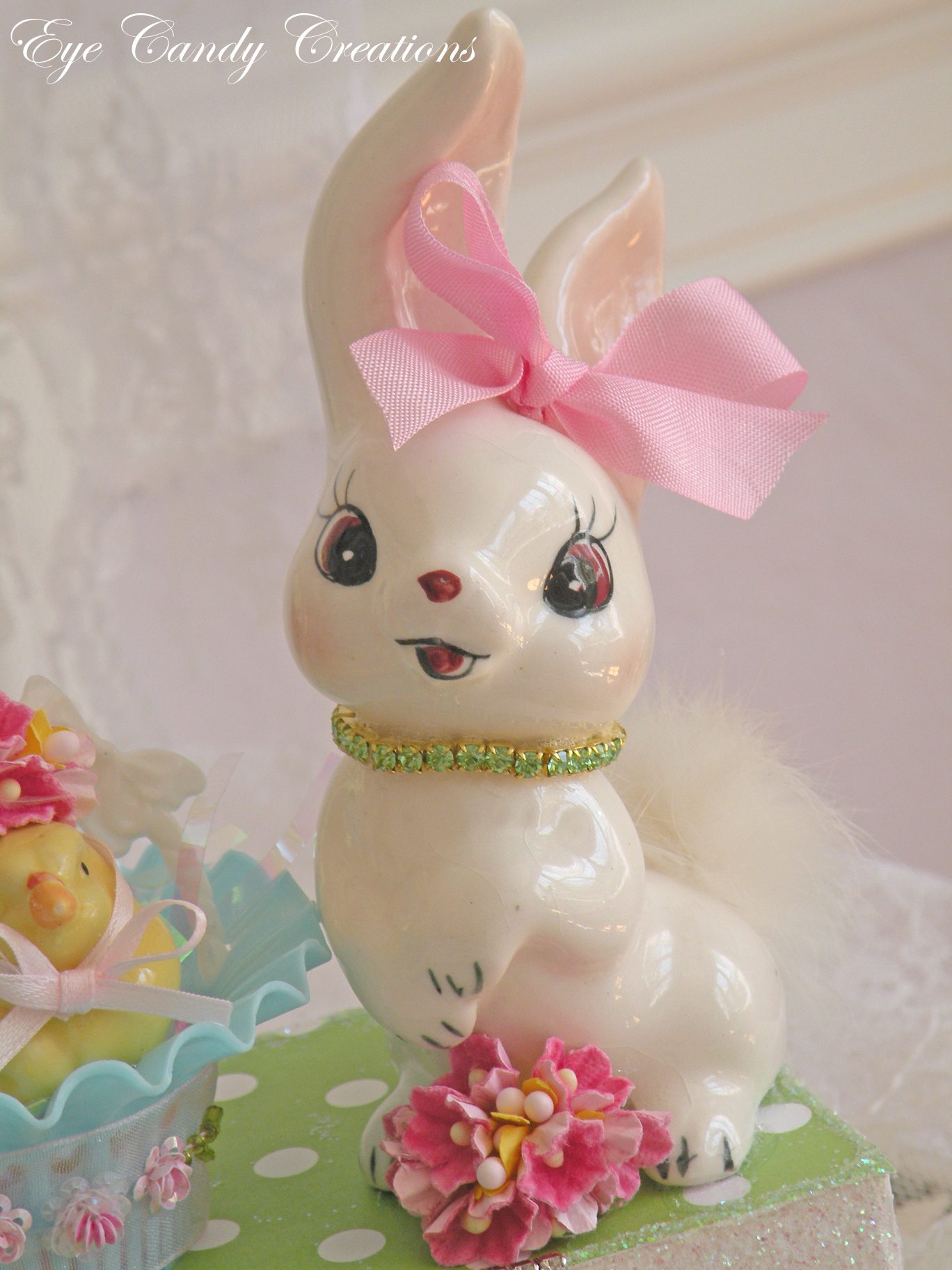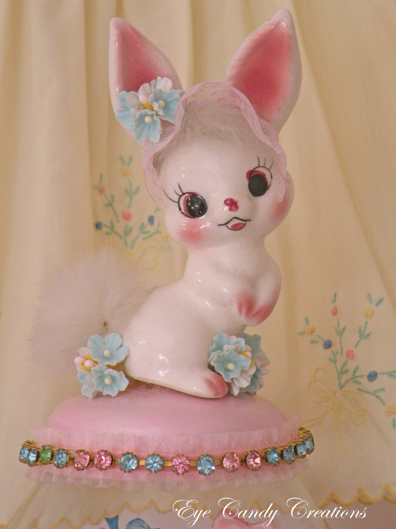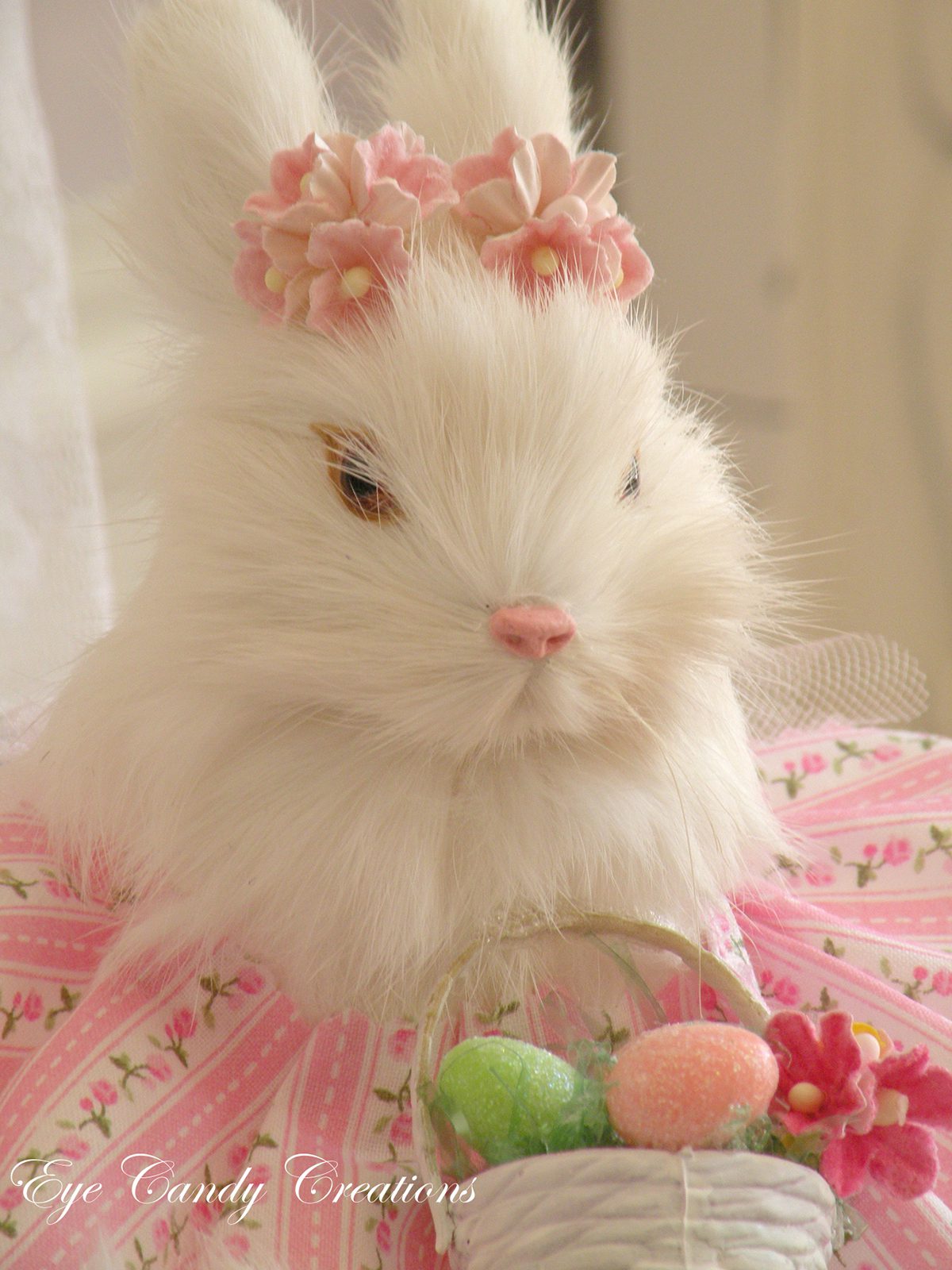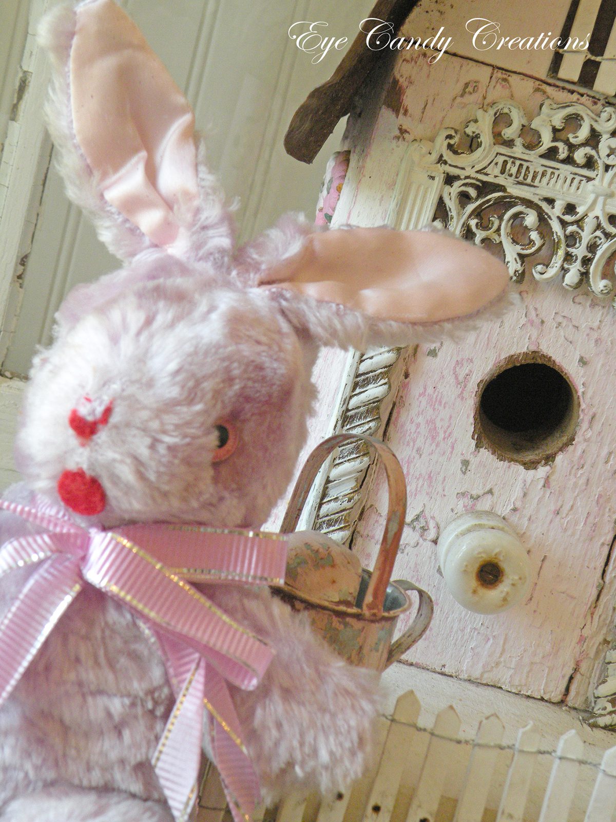 I wonder if this little vintage bunny foo foo ever had a name?? Well… In keeping with the Easter theme I think I will name this adorable cuddly bunny "Jellybean". :)
