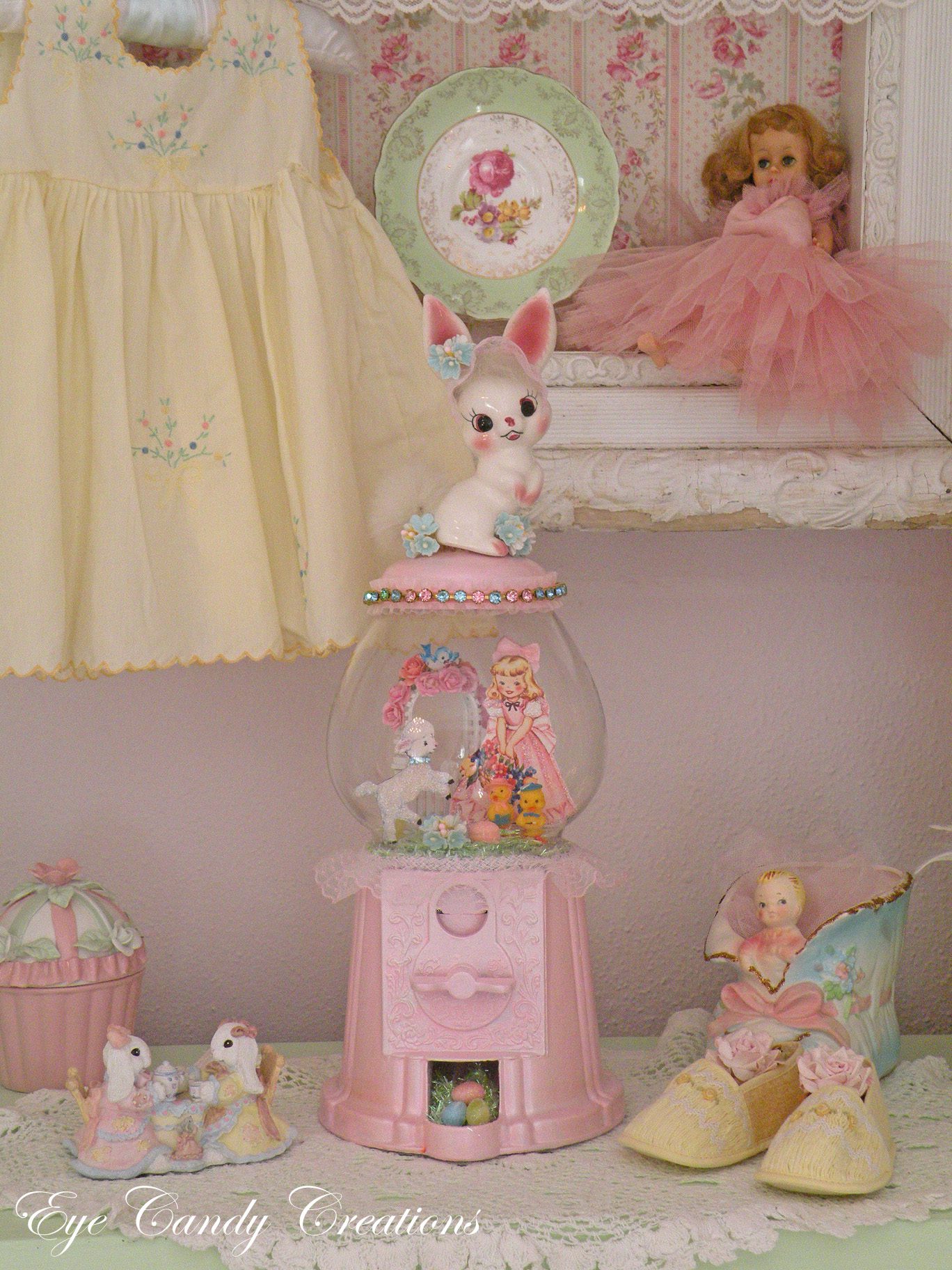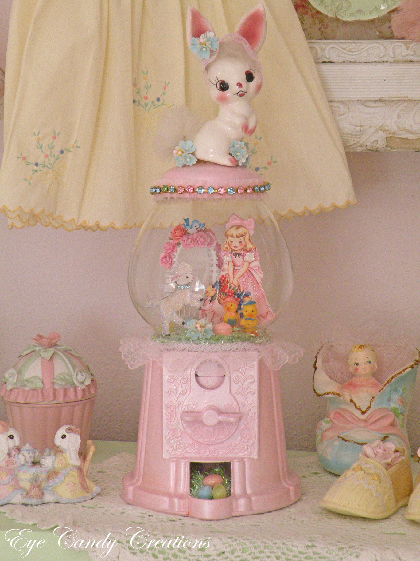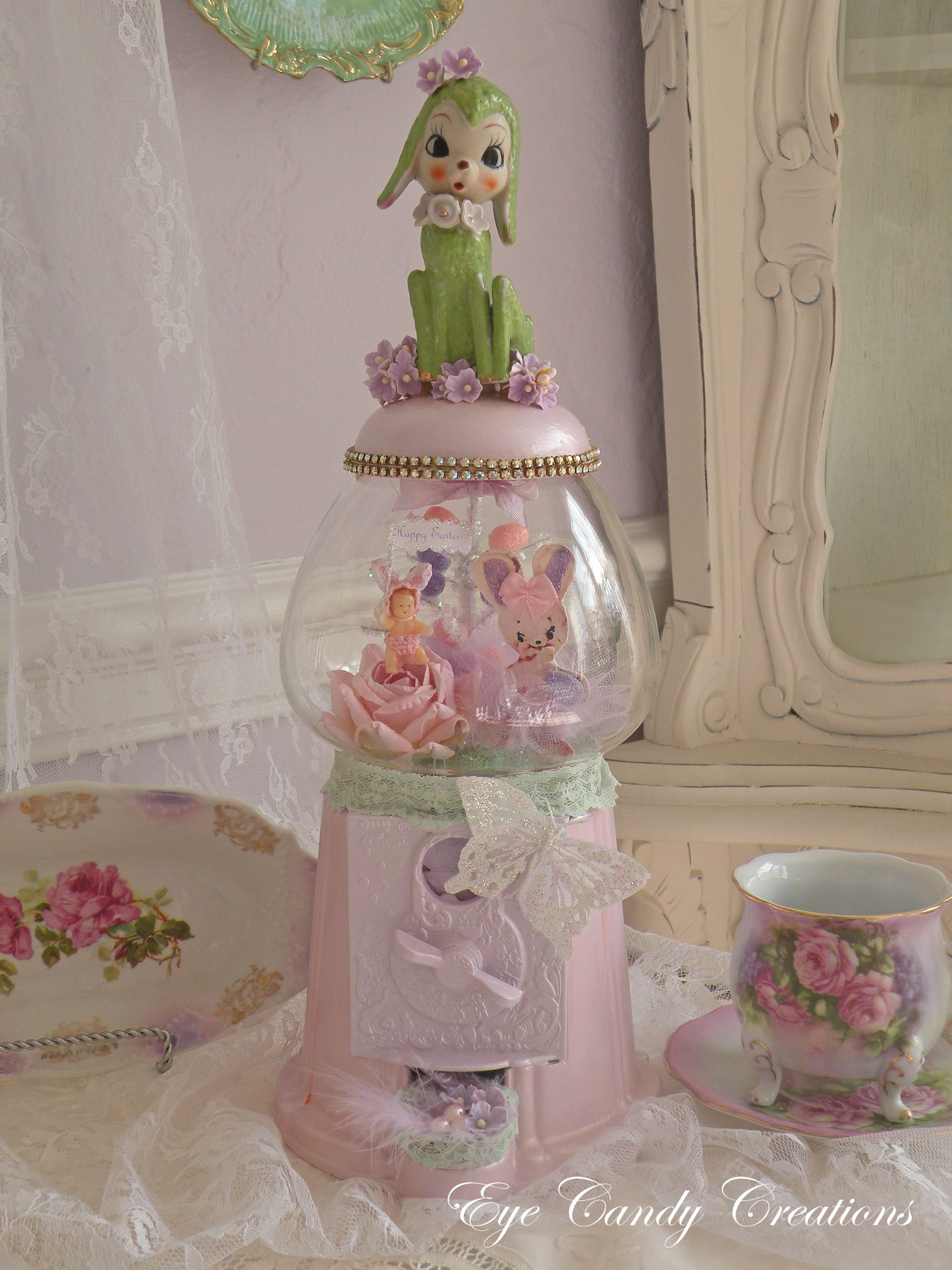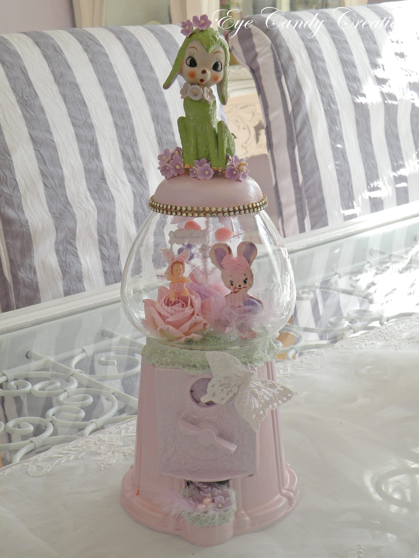 I had wonderful feedback to my adorable and whimsical gumball machines assemblages I made over Christmas so I created some with an Easter theme.