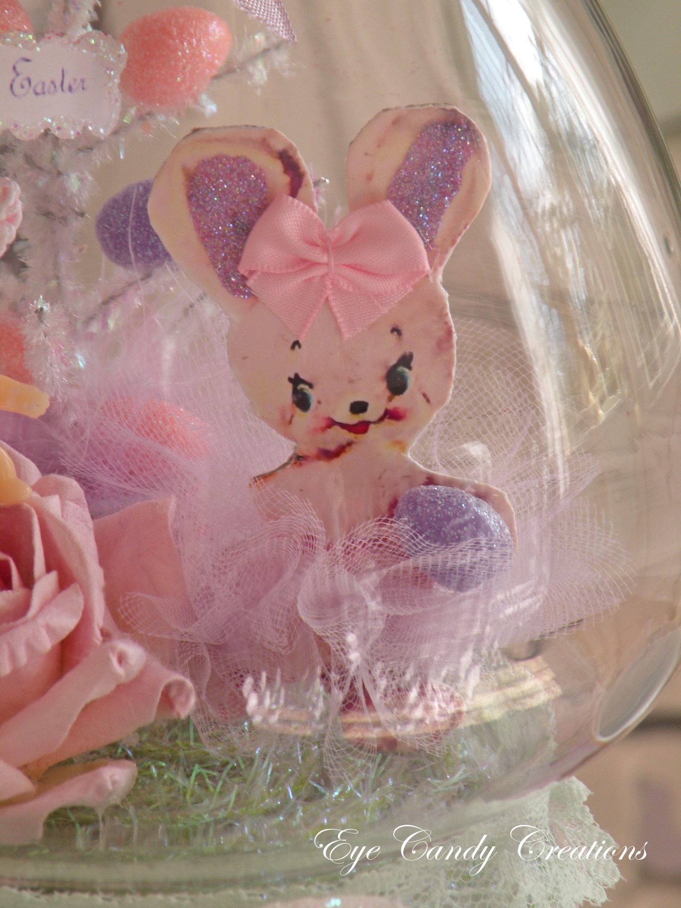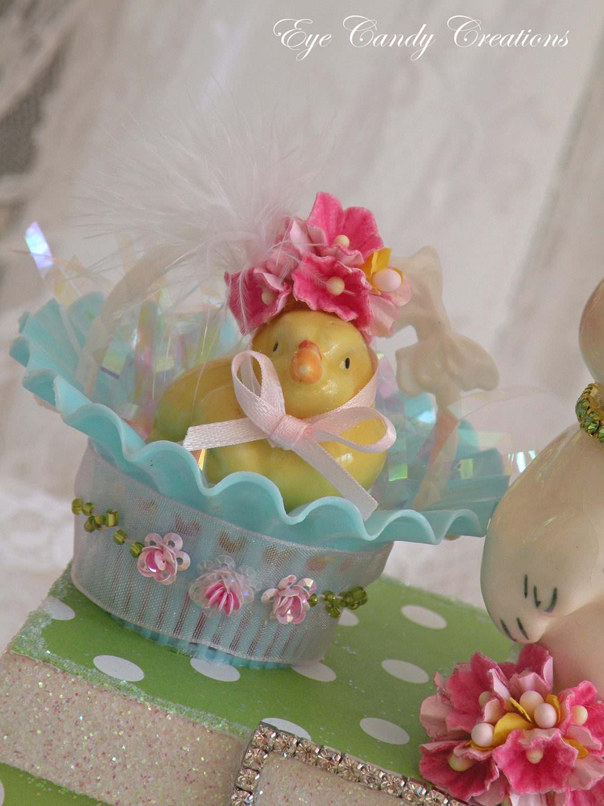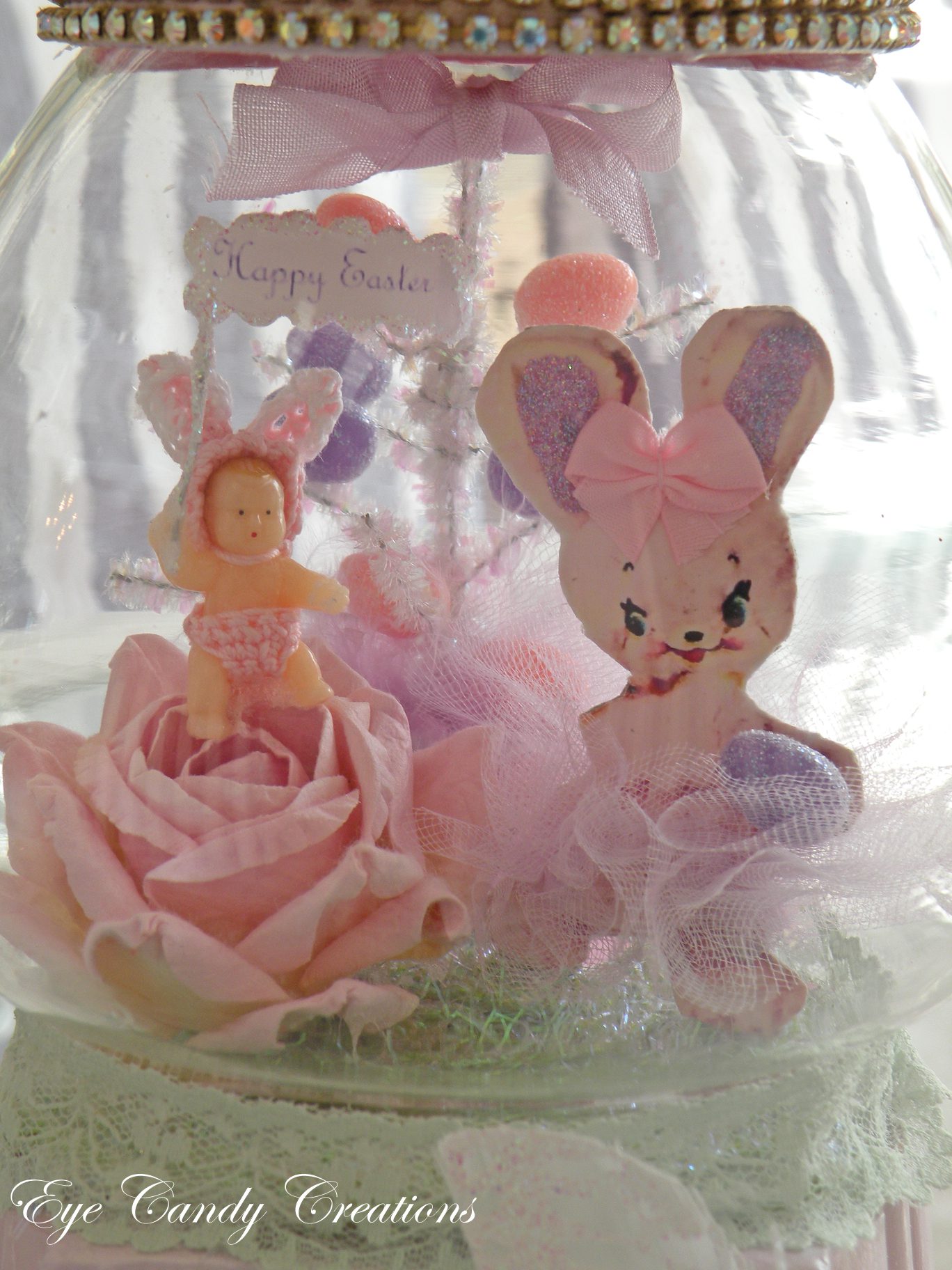 I had wonderful feedback to my adorable and whimsical gumball machines assemblages I made over Christmas so I created some with an Easter theme.