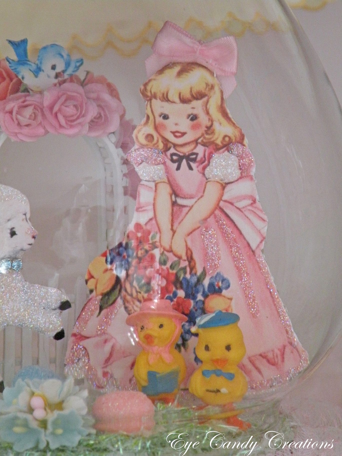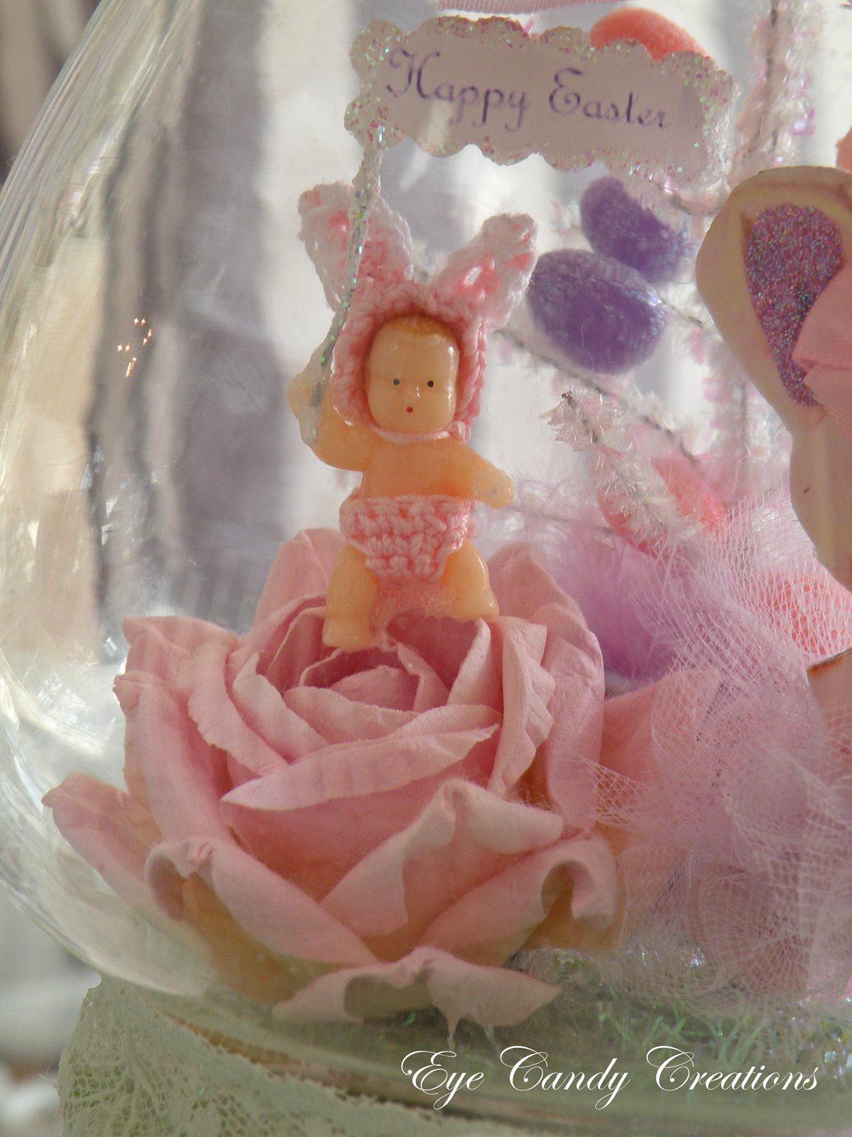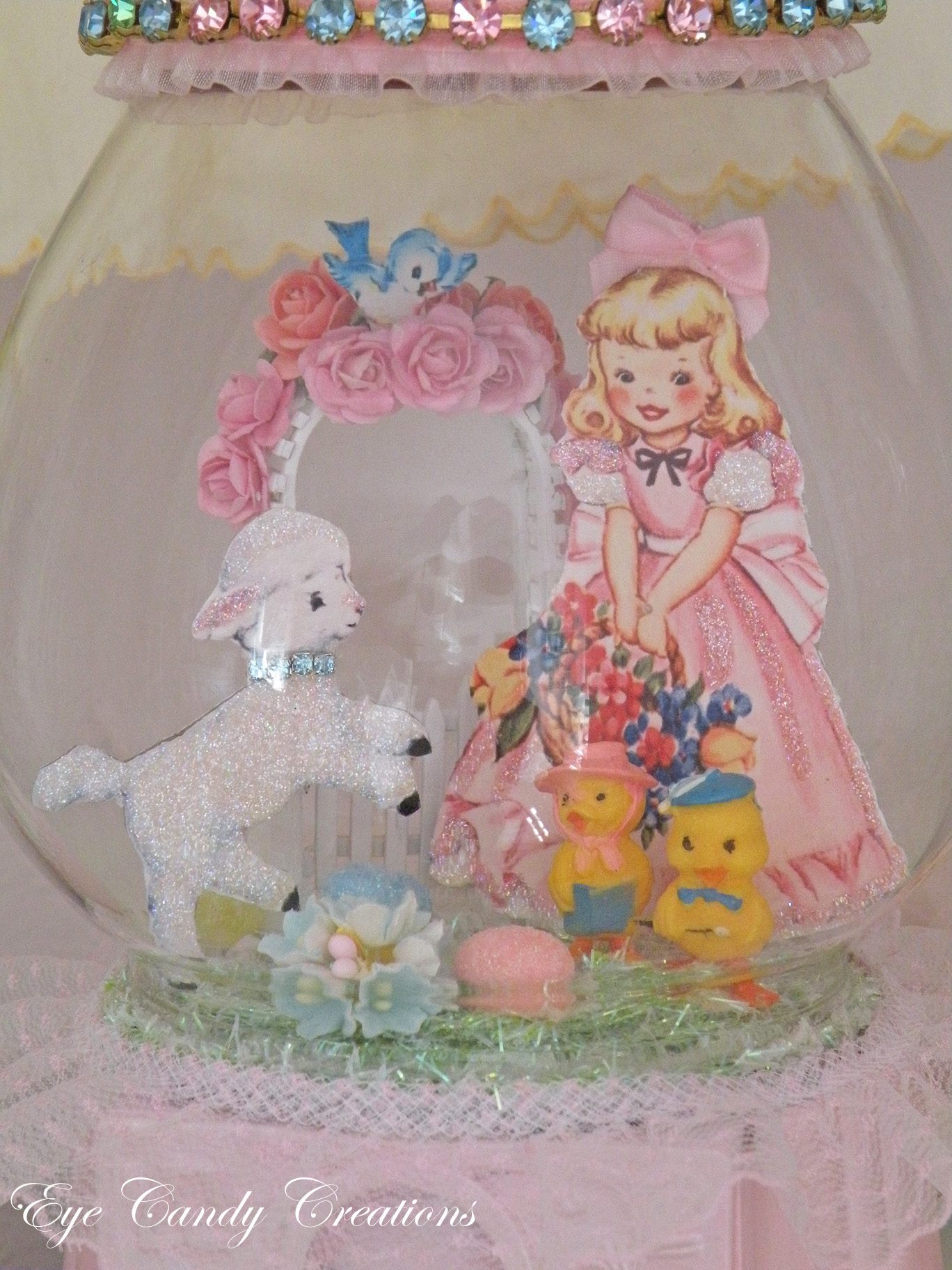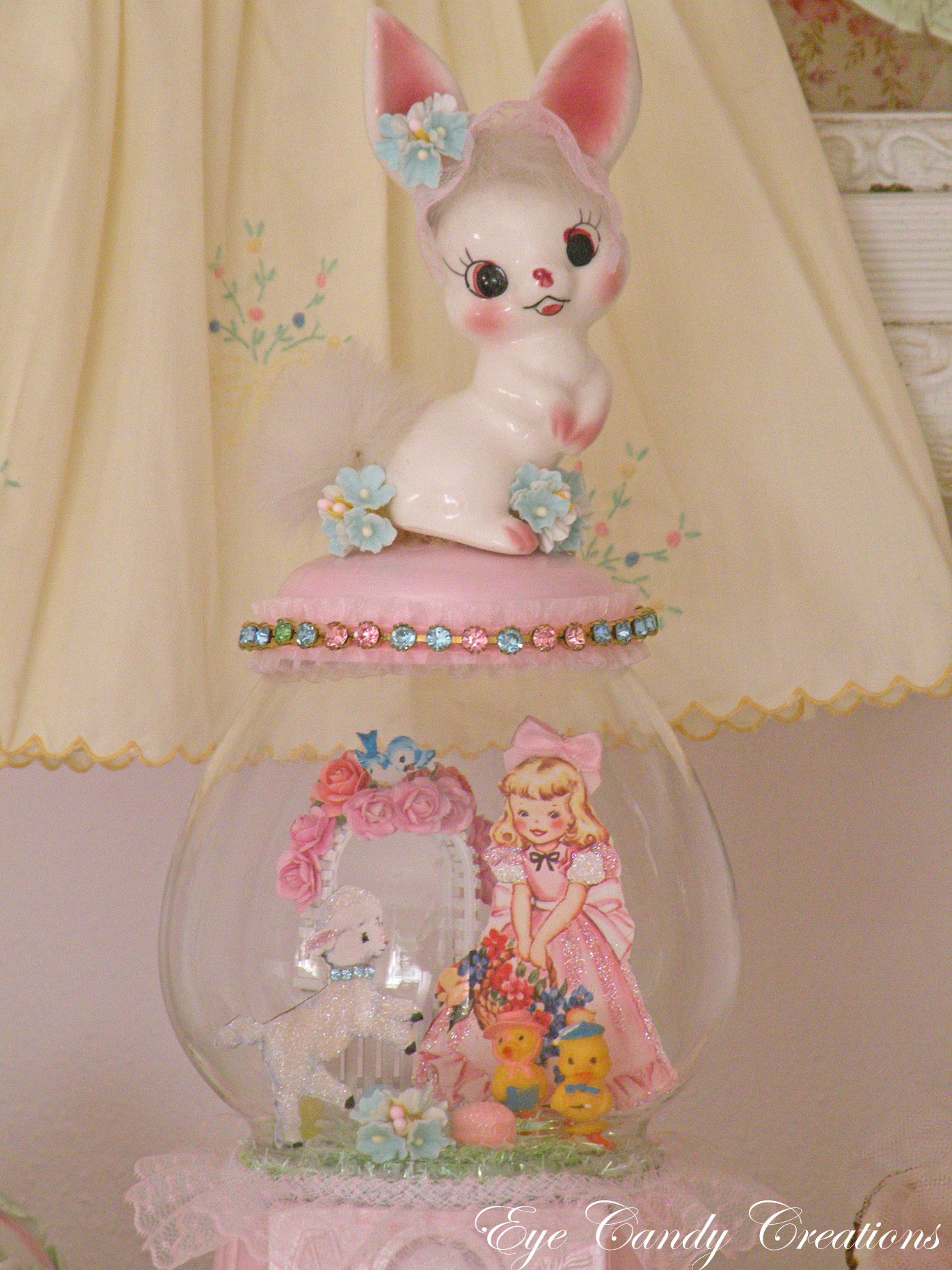 I had wonderful feedback to my adorable and whimsical gumball machines assemblages I made over Christmas so I created some with an Easter theme.