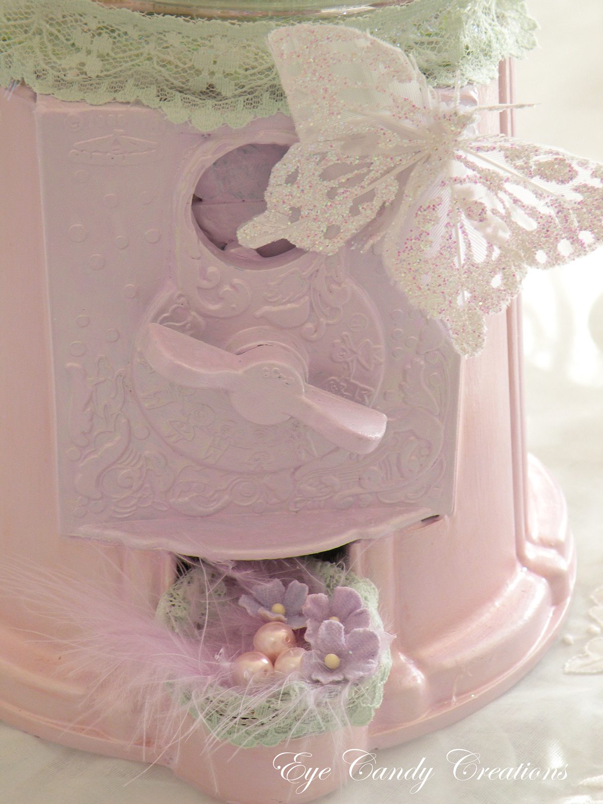 This next piece just makes my HEART SING!!!!! This gumball machine is a custom order piece that I created for my lovely friend Miss Amy of Bunny Rose Cottage. Amy is honestly one of the *SWEETEST* gals I've gotten to know thru blogging and so I really wanted to make this custom piece extra special just for her.