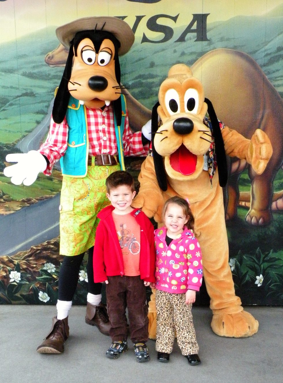 The children with Pluto and Goofy while visiting Animal Kingdom.