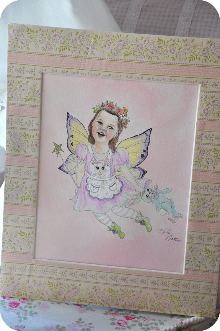 A cartoon of Vivian the fairy. This BEAUTIFUL and darling piece was hand drawn and painted by the super talented Karla Nathan.