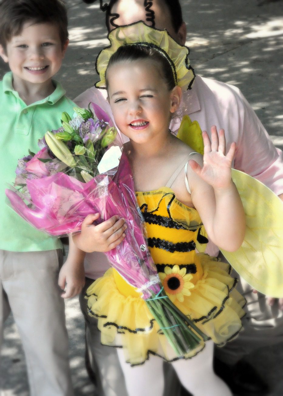 Oh my goodness, Jen, what a very lovely bee is that Viv! All these pictures are just gorgeous and make me wish I could have seen the performance myself. I love all the sweet family shots, too. How very special that you gave Vivian a bouquet of flowers after her performance. She must have been floating on air!