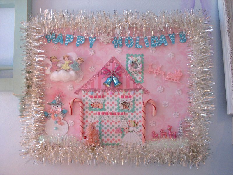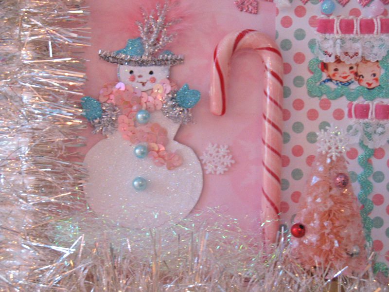 Im excited to share with you my FINAL and LAST Christmas creation of this year. This is a picture frame collage that is just so jolly and whimsy. It’s available in my Etsy shop. I SERIOUSLY hate to part with it, and it wont break my heart IF it doesnt sell. It actually looks pretty sweet hanging in my bedroom. However, I would love the opportunity for someone to enjoy it!