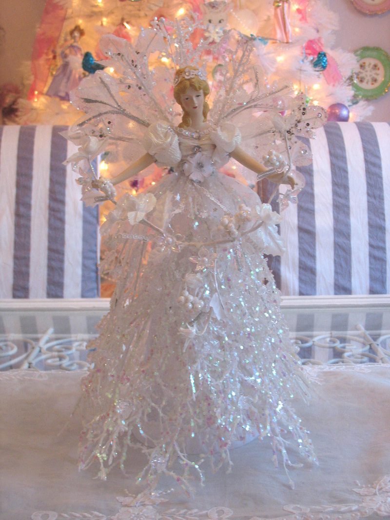 This is Angel "A". I call her the Winter ice snow angel. She has icy looking twigs on her dress.