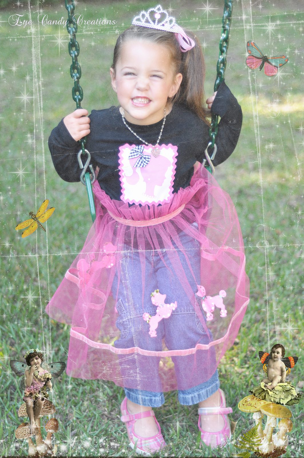 Vivi felt super girlie in wearing Miss Jessi's Hey Doll top, tiara, and my vintage pink poodle apron.