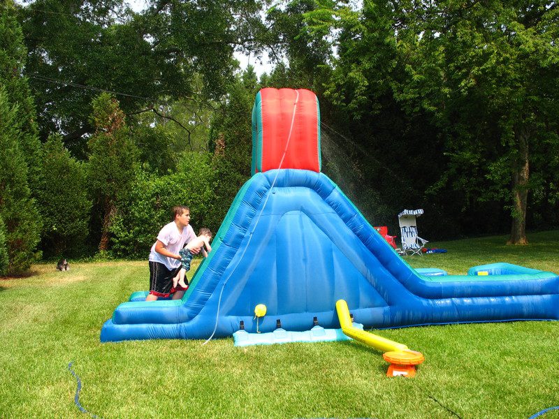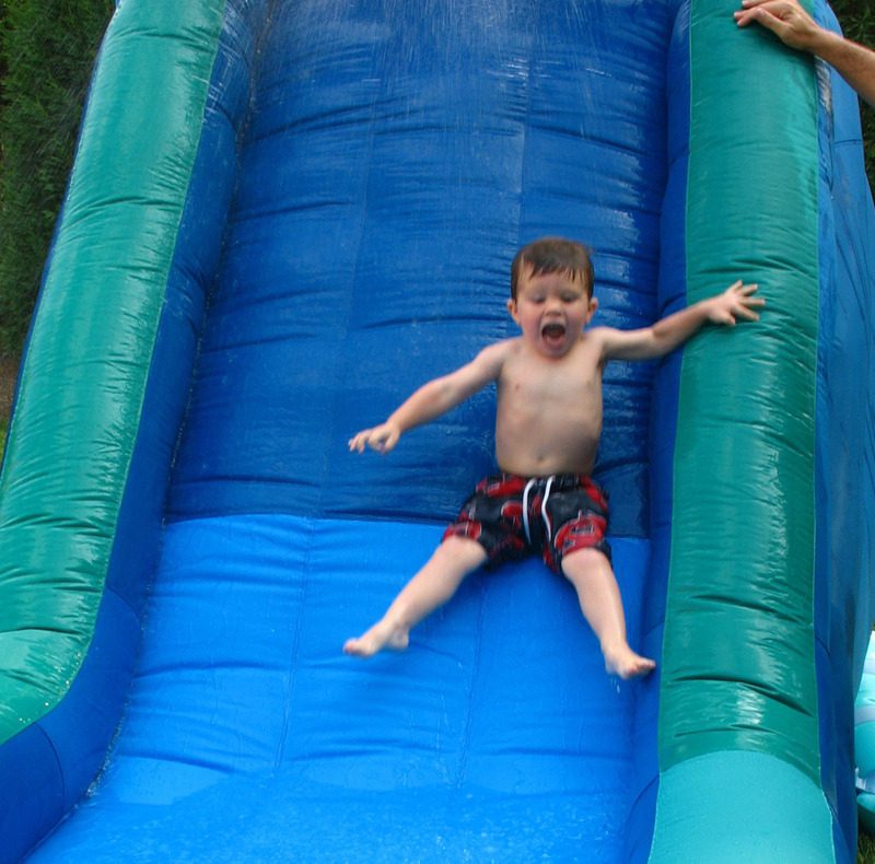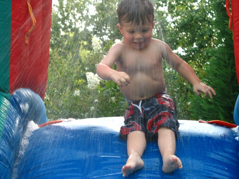 First, I thought you might get a chuckle out of this. My husband comes home Friday with this huge box from Toys R Us. Being it’s sooo hot here in GA, and we dont have a swimming pool, my hubby decides we need something fun for our two year old to play with outside. Of course I was very curious to know what it was because he did not consult with me on this puchase. Well, low and behold it’s a monster obnoxious blow up slide that takes up most of our backyard. LOL! JK! I am exaggerating a wee bit. ๐ BUT still, the thing is HUGE!!!! Well……hours later and with tons of smiles and giggles my son is having the best time!!!! I must admit, as obnxious as the size is and I KNOW myself I would have NEVER had purchased it because of the size alone, I have to say it’s well worth every penny to see my son scream with joy and laughter going up and down the slide over and over again…..:)