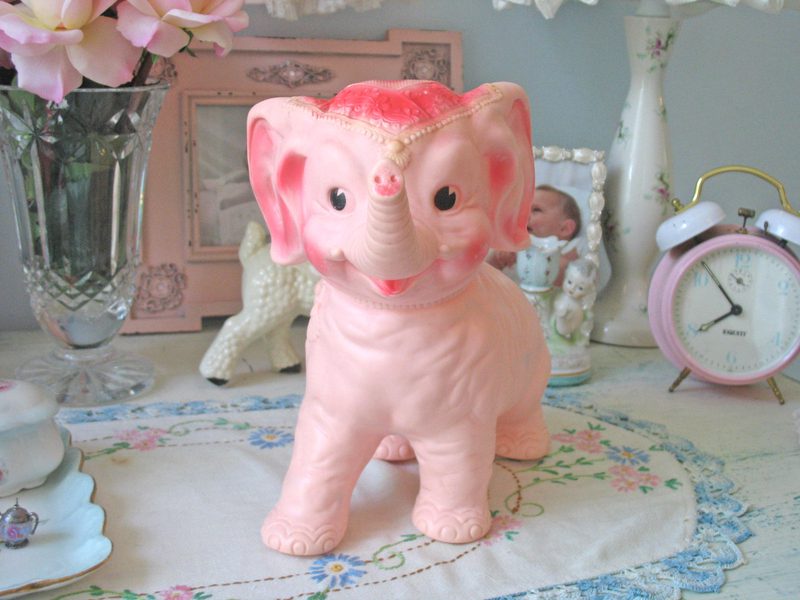 The pink elephant reminds me of the vintage bear toy that I just added to my site. Not pink, but it is still fun.