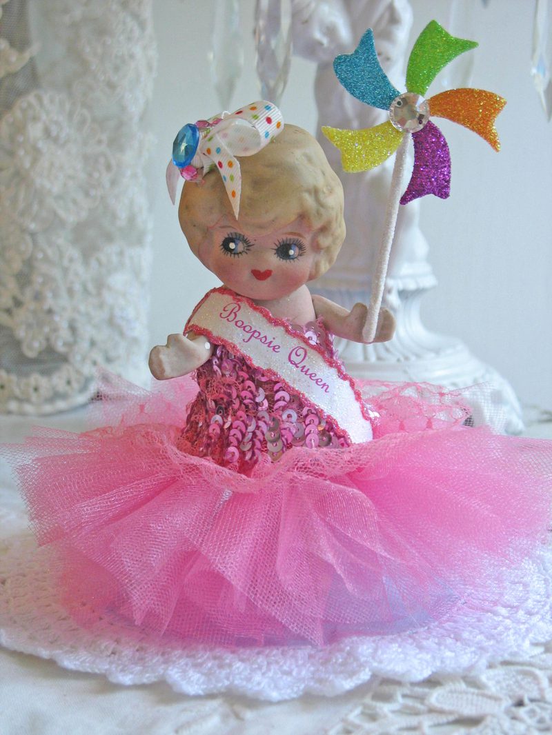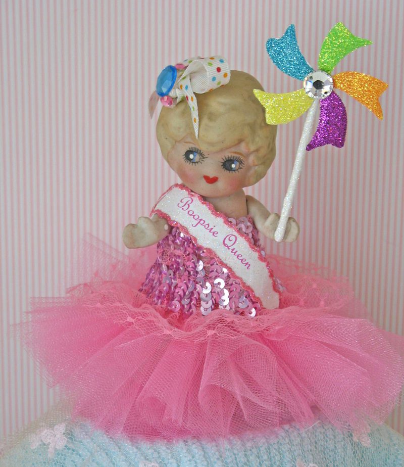 Miss Boopsie Queen has a pinwheel instead of silver wand because Boopsie’s world is so COLORFUL and there is one particular photo in her Flickr photostream of her daughter with a big old fashioned rainbow swirly lollipop. It’s the SWEEEEETEST photo, and In the background is a LARGE wind pinwheel. To me this darling little pinwheel represents Miss BOOPSIE. π
