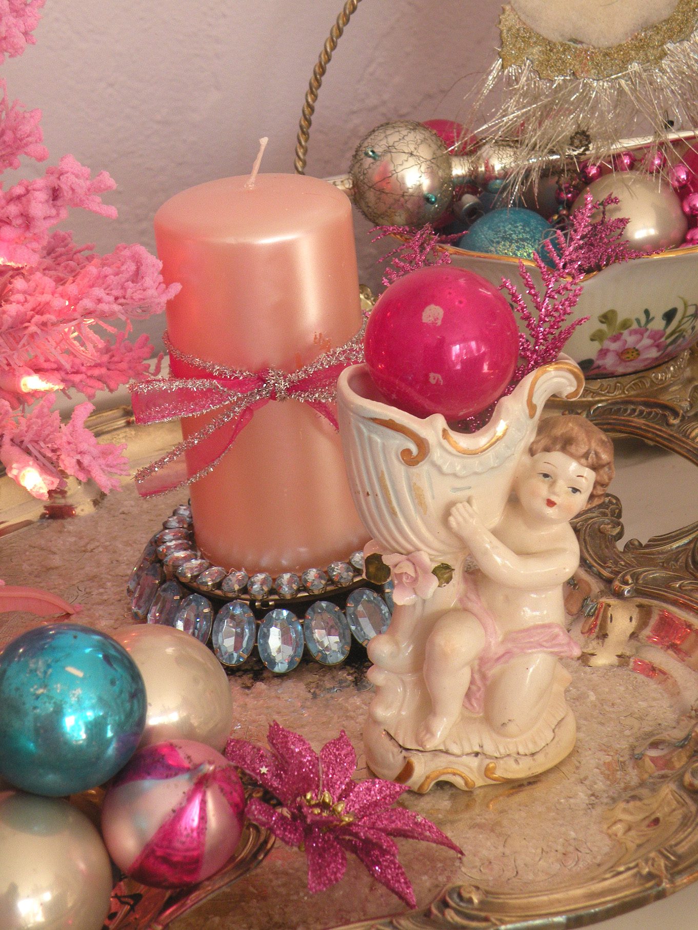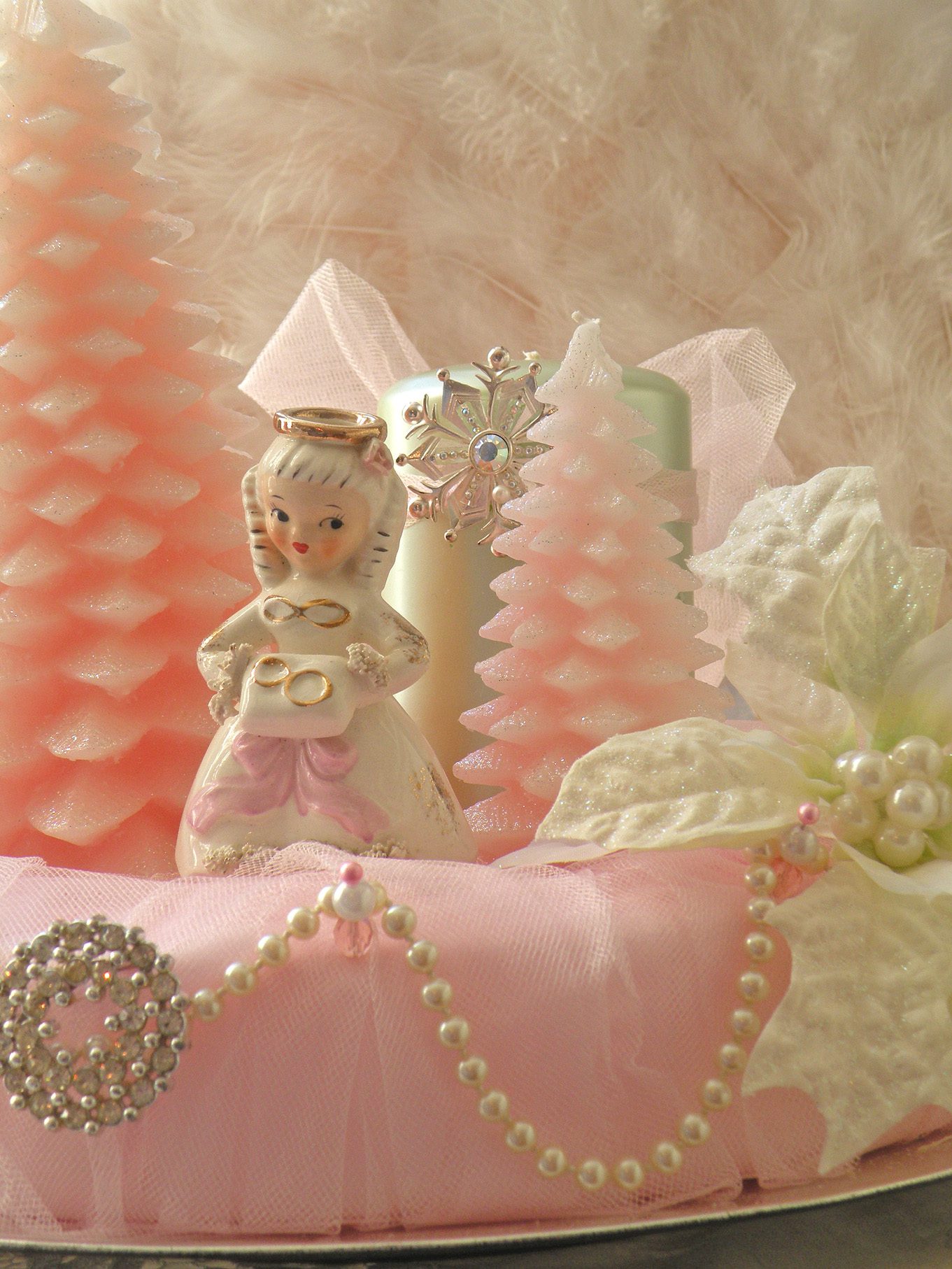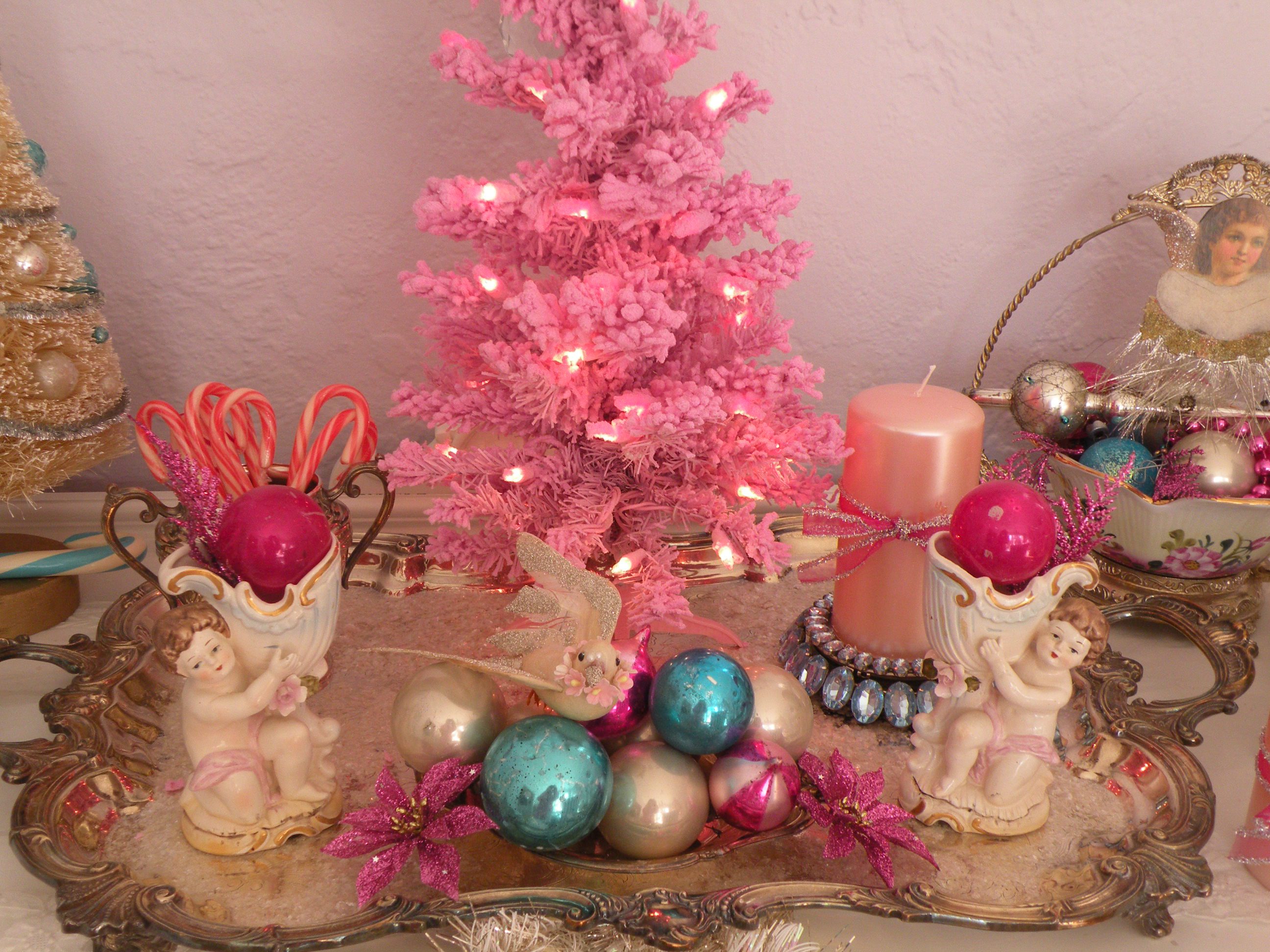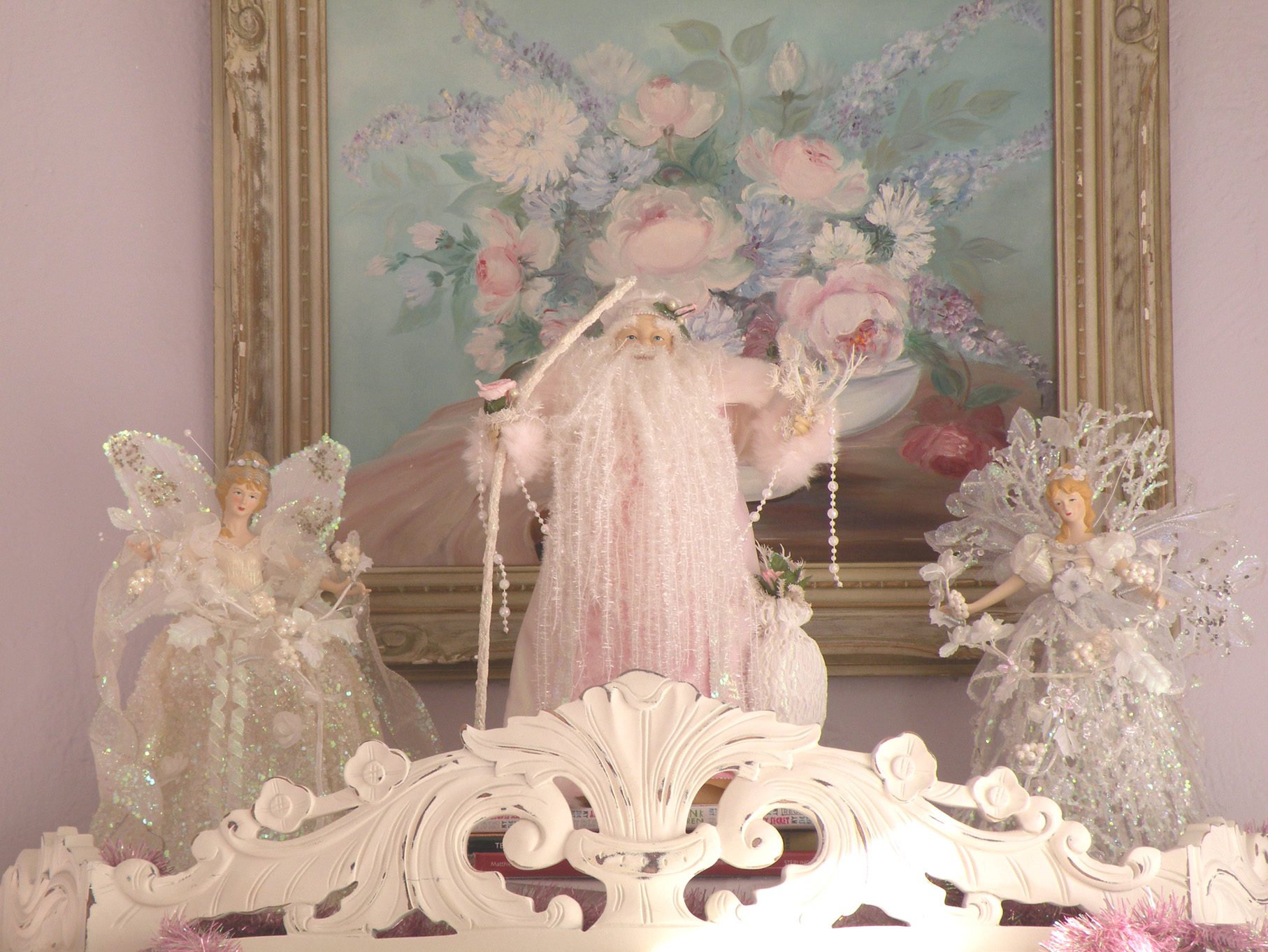 Every year I pull out my pink Santa Claus and angels.