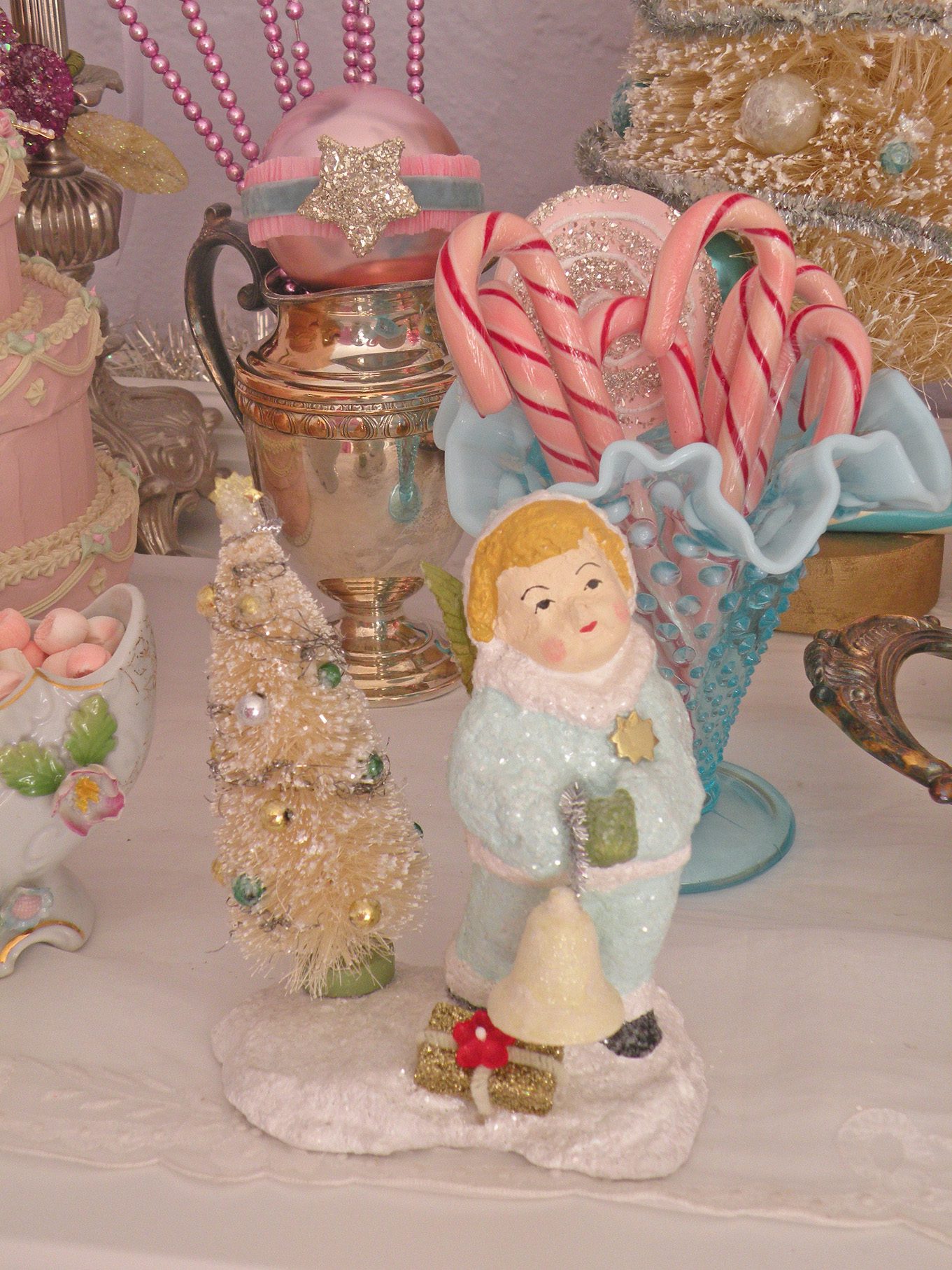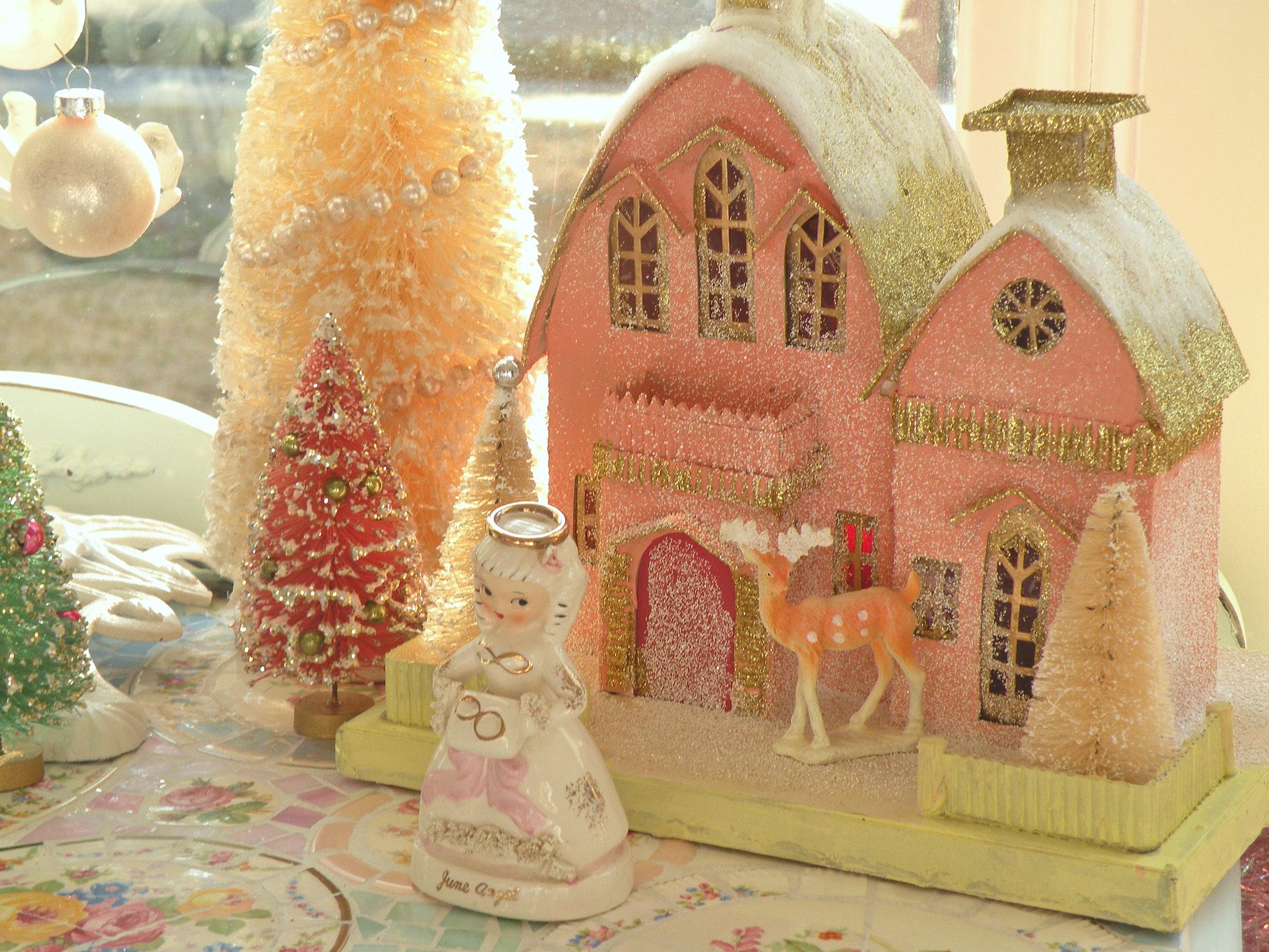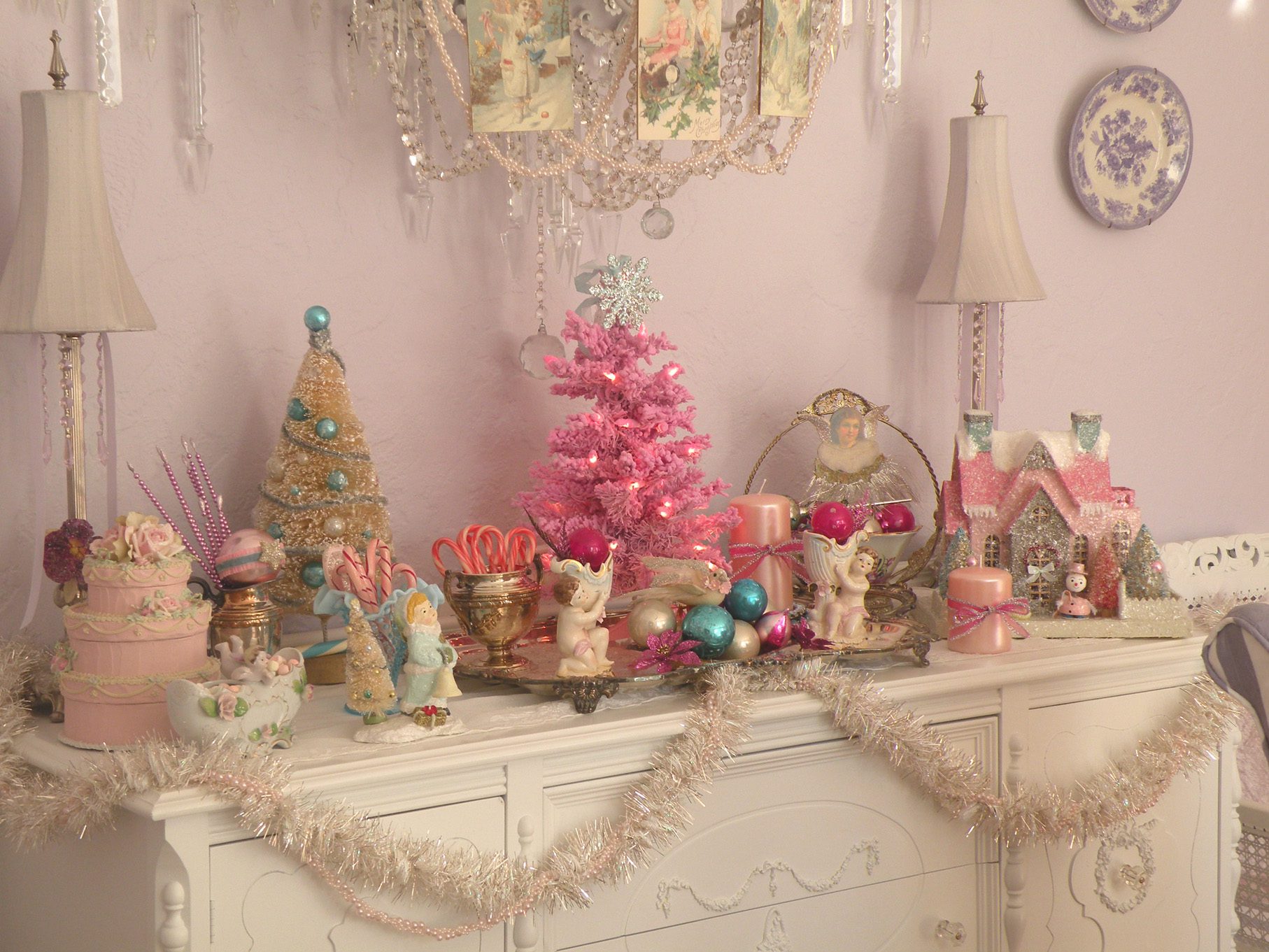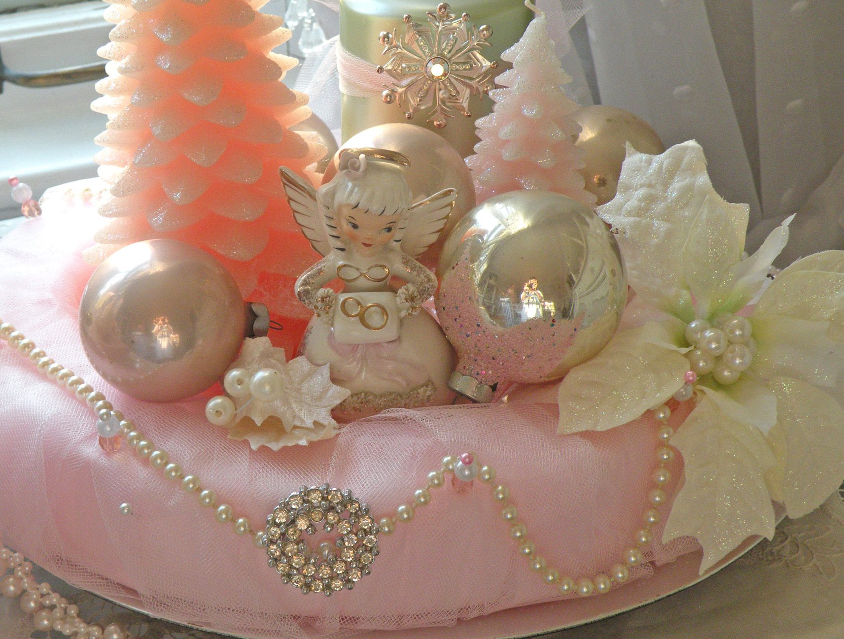 Every year I pull out my pink Santa Claus and angels.