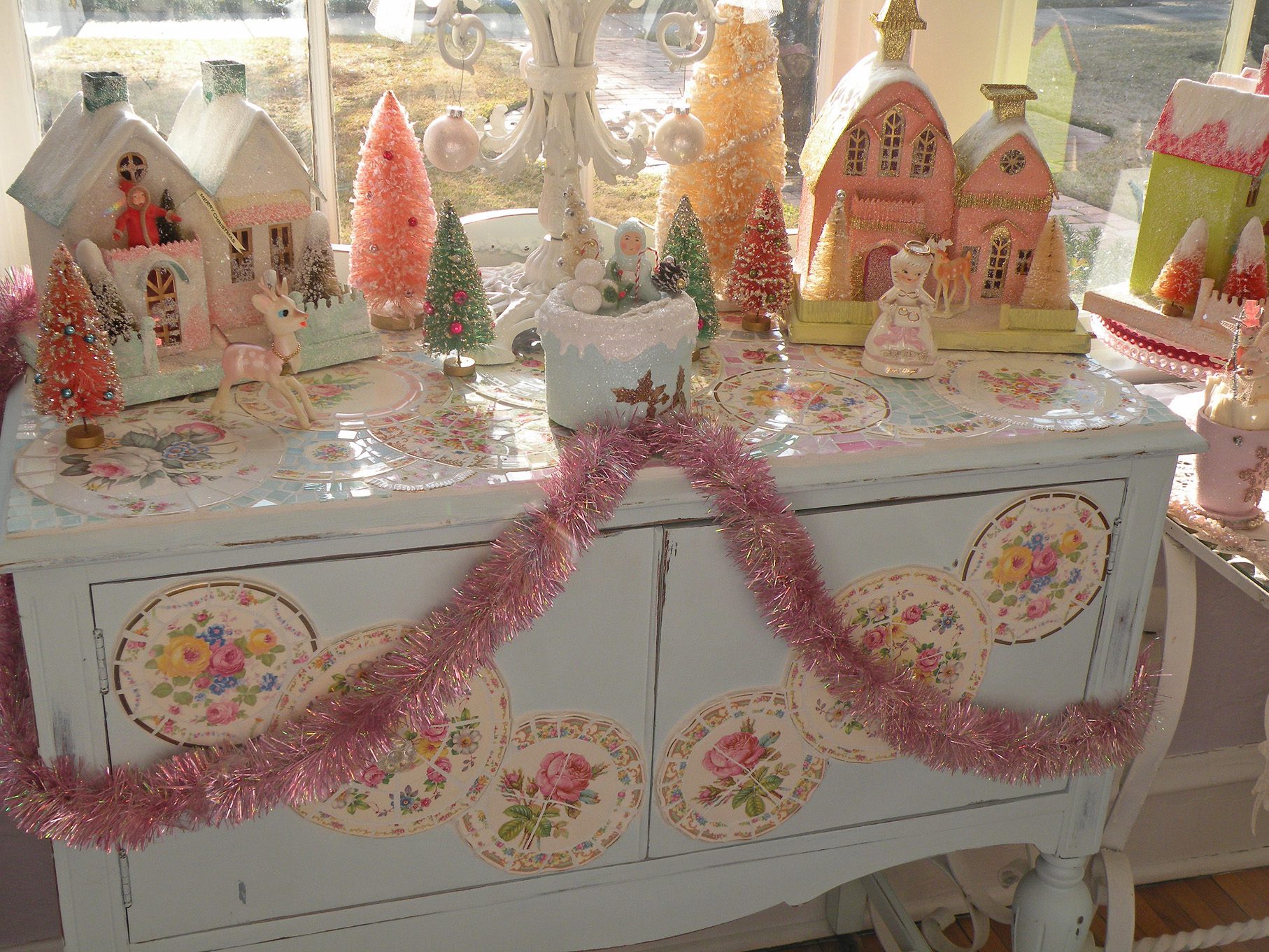 OK. Seriously Jennifer! My head is swimming! I LOVE your holiday, pixie, fairy, elfin, all things pink and wonderful, enchanted cottage, buttercreme, sugar cane, cottage of delights! You win the prize for most amazing and stunning all around fabulous holiday display. I am humbled and seriously wanting to come over for a cup of tea. You know how to do it up! Please please please do a posting from your Xmas day! I think I will die if I can not have a slice, and peek into your christmas cake! I want to pretend I am part of the family! At least let me help you with the dusting! Hee hee!