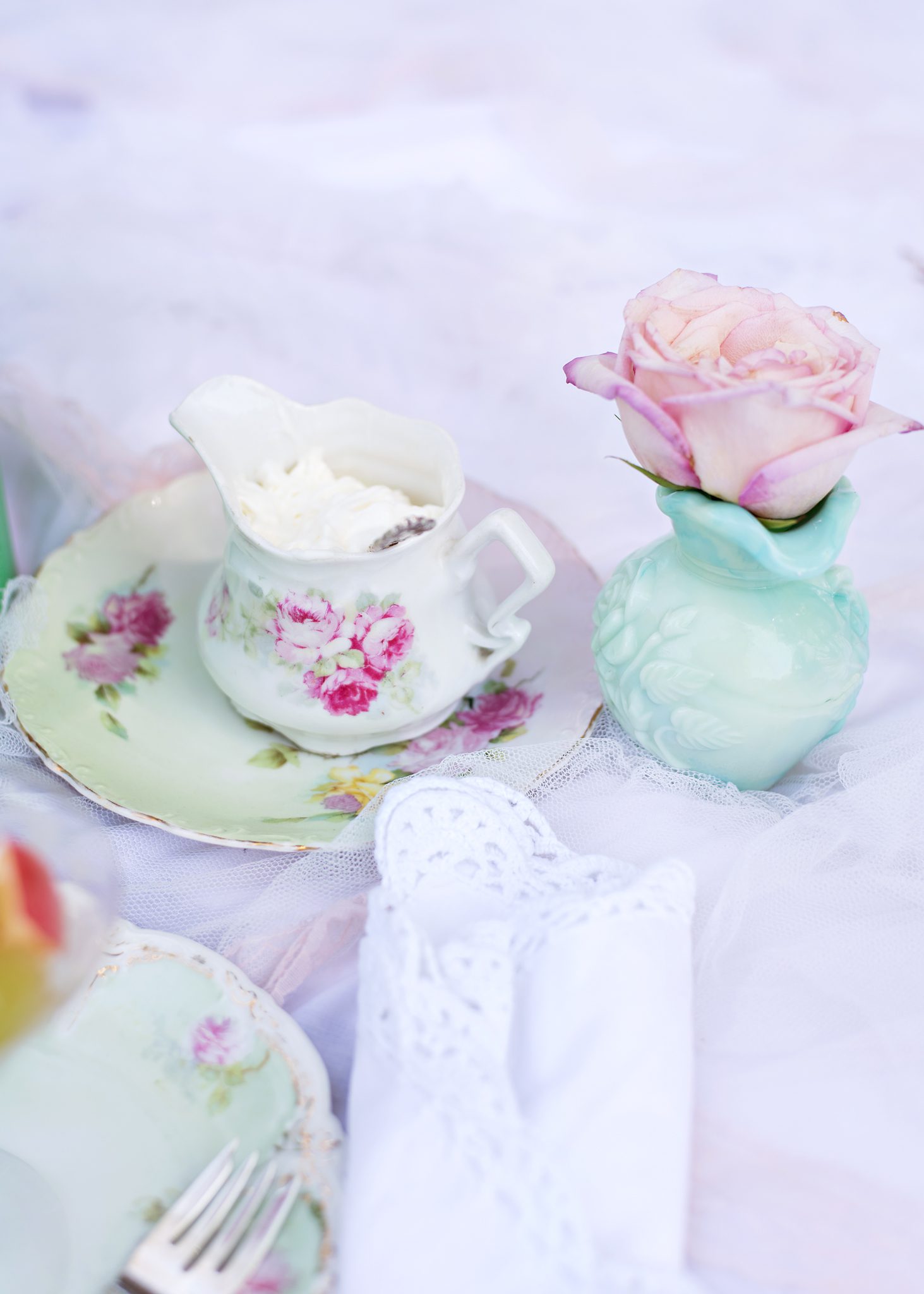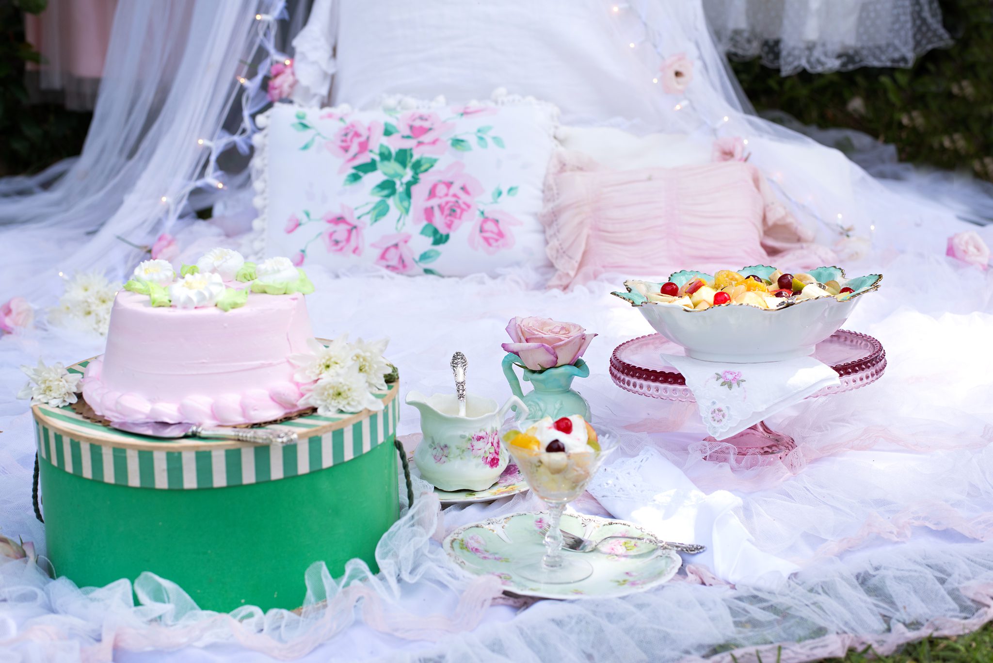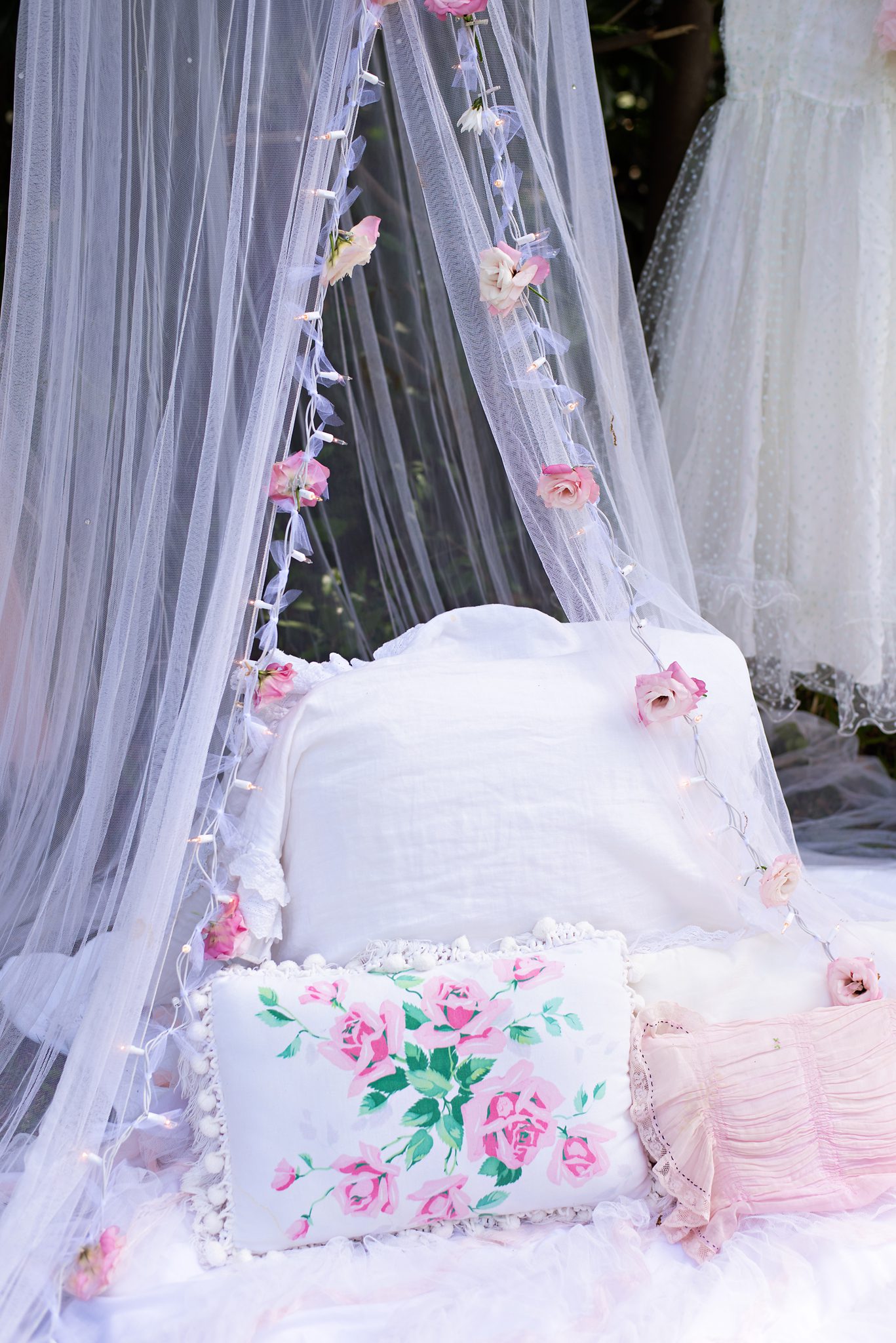 Roses and twinkle lights lend to a magical and enchanting mood.