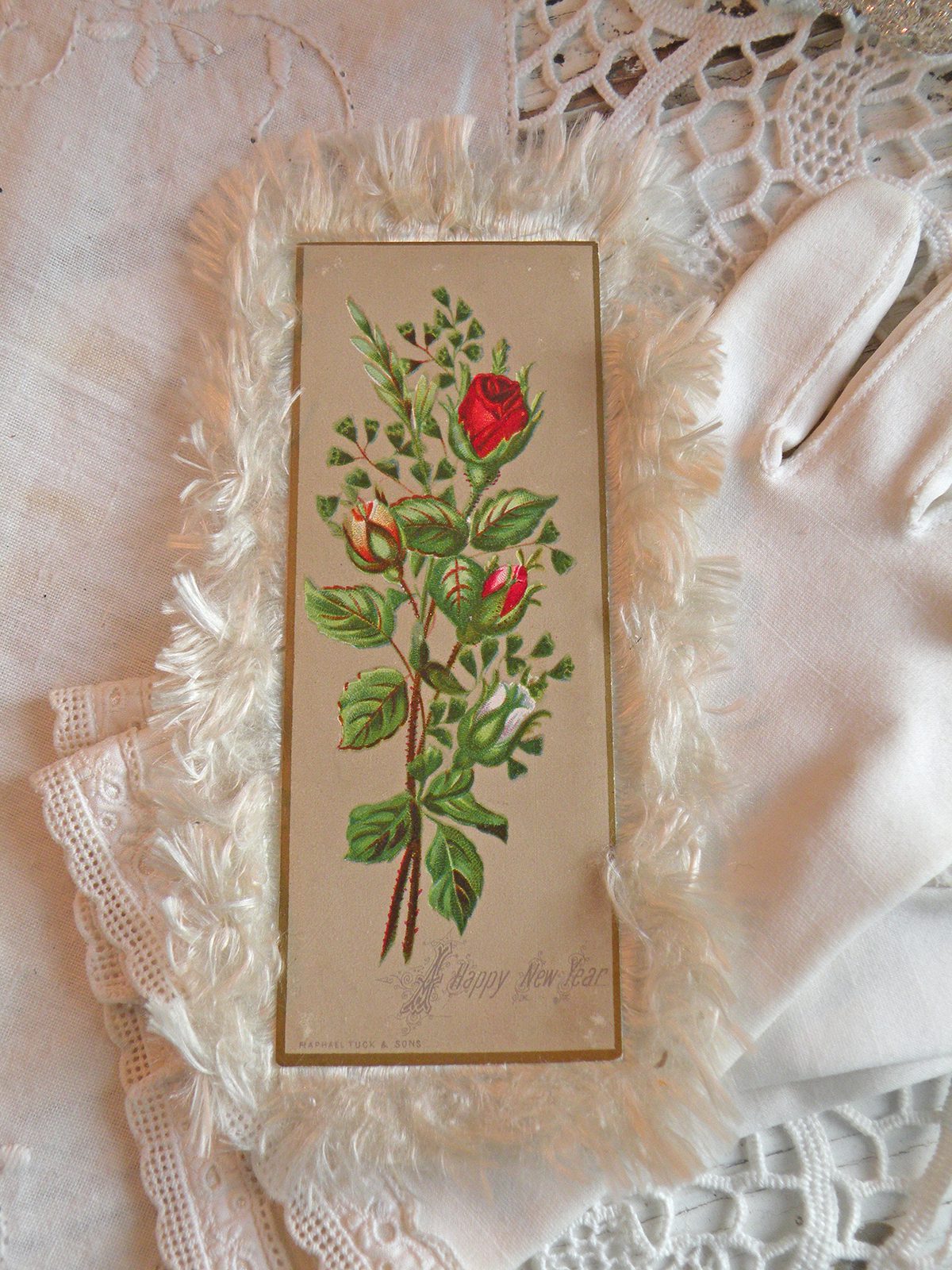I purchased this beautiful old fringe card for a steel! When I saw this I instantly thought of Miss Heather of Pretty Petals. I know how much she loves these cards. ๐ Miss Heather when is your b-day? hee! hee!