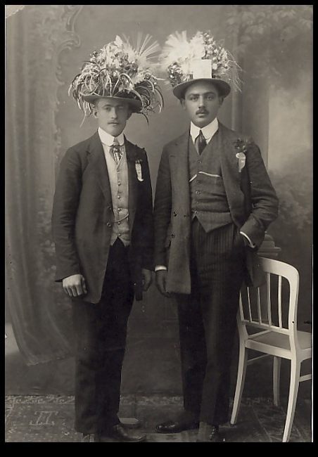 I collect vintage photos with a humorous twist and am wondering where you found that picture of the two men wearing those fabulous hats? Do you own the actual photo or did you find it on the internet. Did you photoshop the bonnets onto their hats?