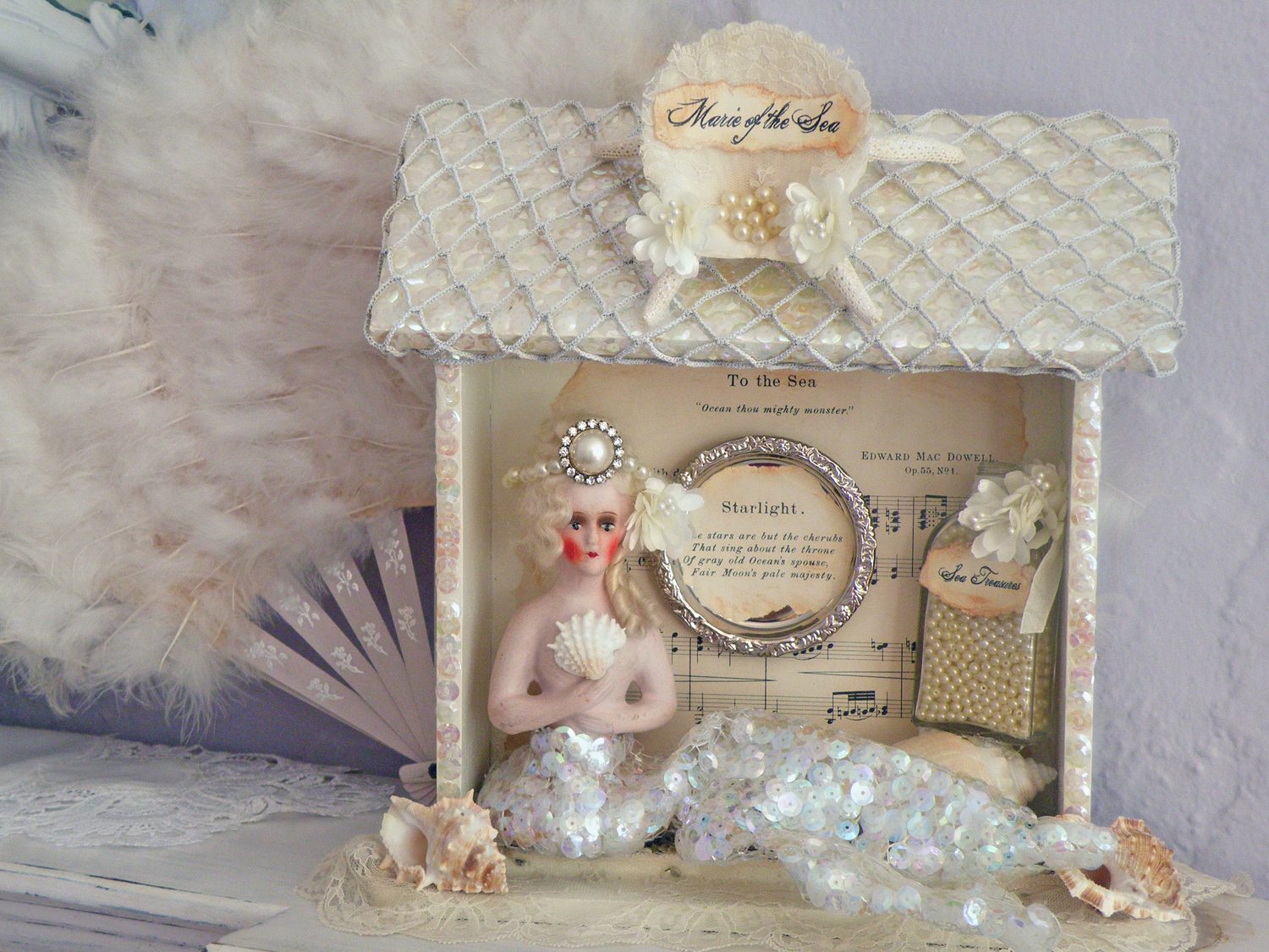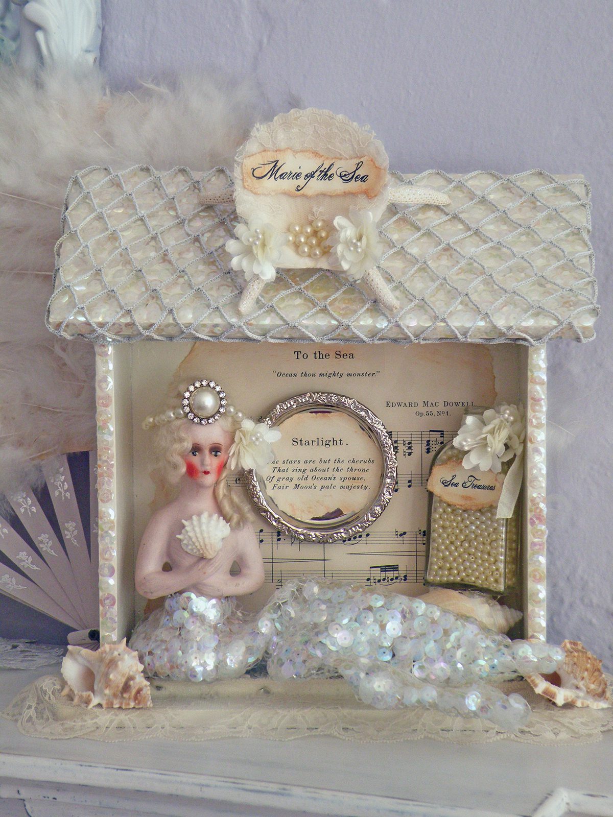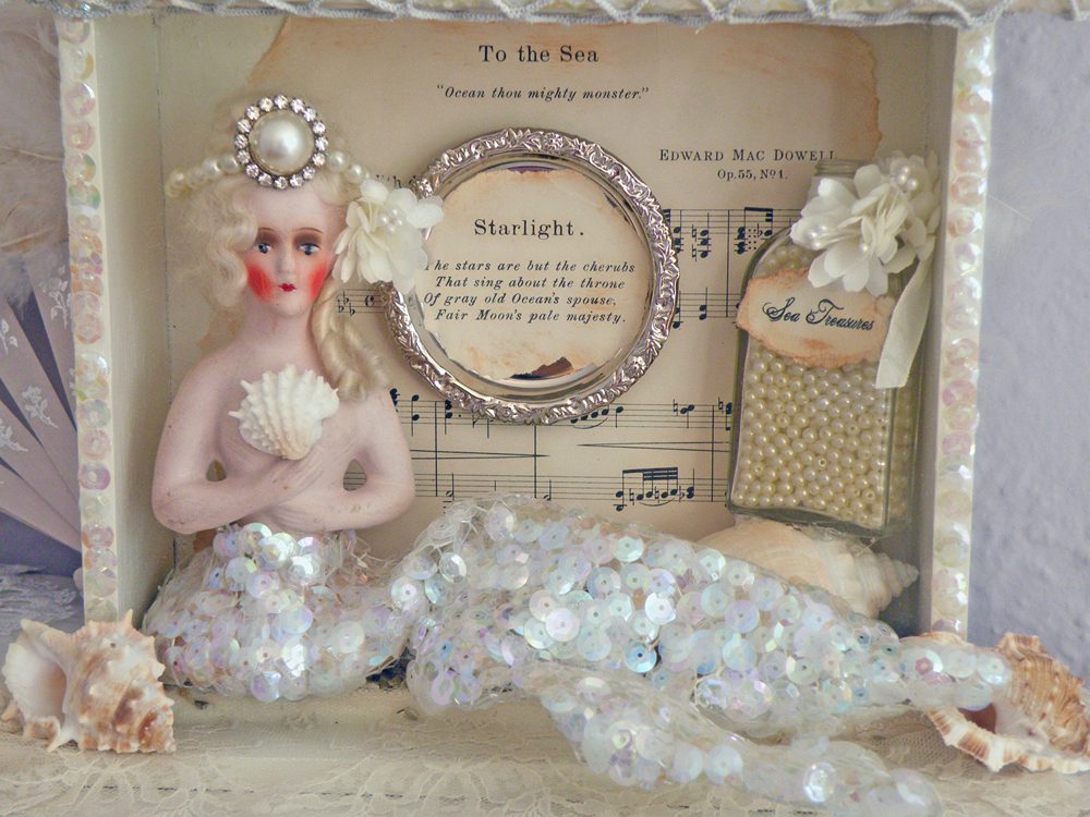 Hi Jenn!! Oh my goodness!! I ADORE your “Marie of the Sea” shadowbox!!! SO cute!! I just saw a little half doll identical to the one you used and now I am wishing I had bought her!!