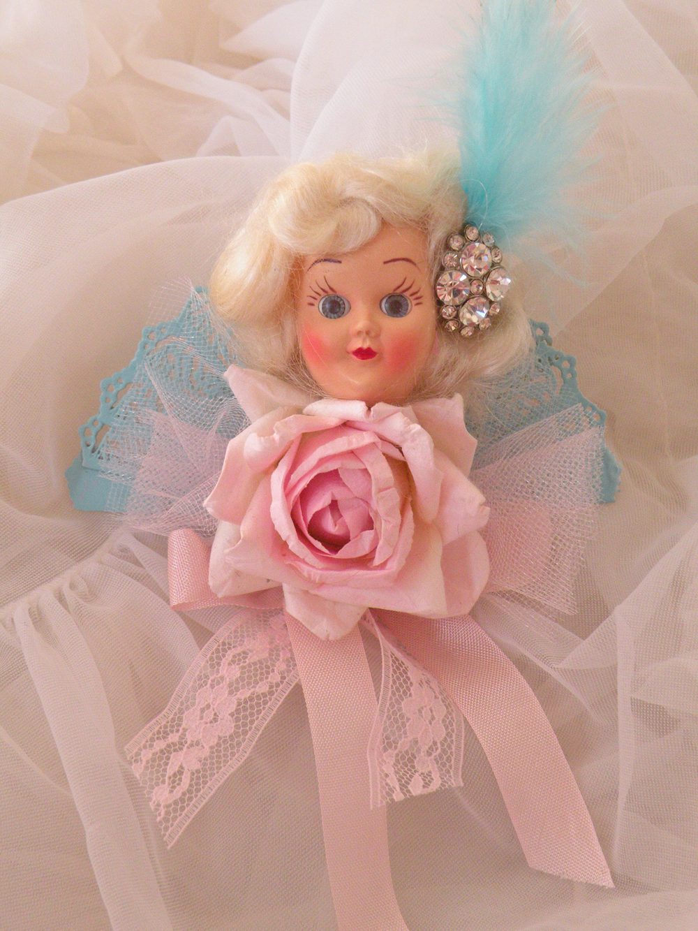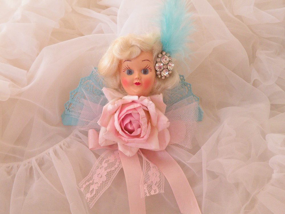 Greetings my sweet and lovely friends!!! Im excited to FINALLY have my Etsy shop updated! I’ve been working like crazzy on so many projects this summer. Number ONE being my Son’s “big boy” room, but I HAD to find time to make some more of those girlie vintage doll head brooches that were such a hit on Inspire Company. The little gals are just sooooo much fun to make. Im really having a great time designing and giving these gals their own look and style.