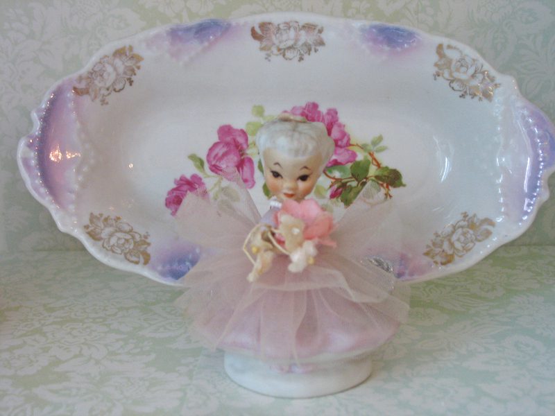 Hello Blogger girlfriends! This is going to be a quicky but GOODIE! It’s almost midnight, and the kiddies get up VERY early! I just couldn’t stand it! I had to post about my most recent vintage finds from todays little shopping adventure. There is a FABULOUS antique mall close by that I haven’t visited in years. OMIGOSH! I was overwhelmed! They’ve expanded = MORE STUFF! WHOO-HOO!!! Well, on a whim, I decided to stop by and see what sweet little figurines needed a dusting off, and a new place to call home. Let me show and tell you. Get comfy!!!!! ๐