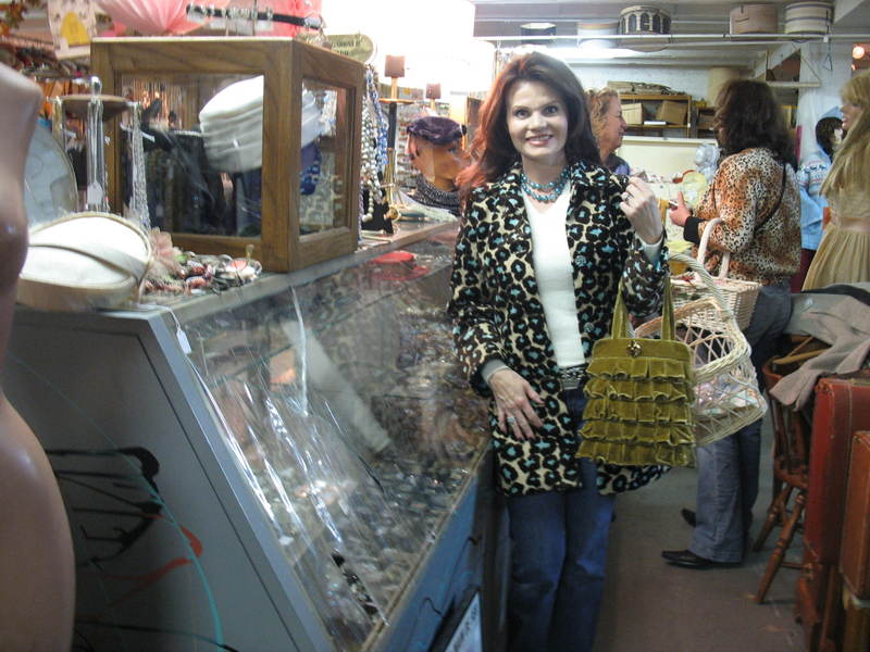 Here’s little ole’ me standing weak in the knees near the vintage jewelry counter. Googie basket is FILLING UP! I will share pics of my purchases in my next post.