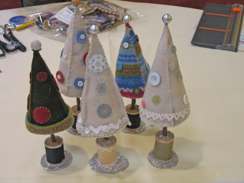 I was signed up for five classes. I was in "awe" of ALL of the instructors who were soo nice and truly amazing! My first class was with the OVER TOP talented Charlotte Lyons. We made the cutest felted Christmas trees. Well, just to let you all know "I DONT SEW!" I repeat… " I DONT SEW!" Luckily, Miss Charlotte was extremely kind to me, and was totally fine if I used fabric glue instead of sewing. "YEAH!!!!!!" I was thrilled!