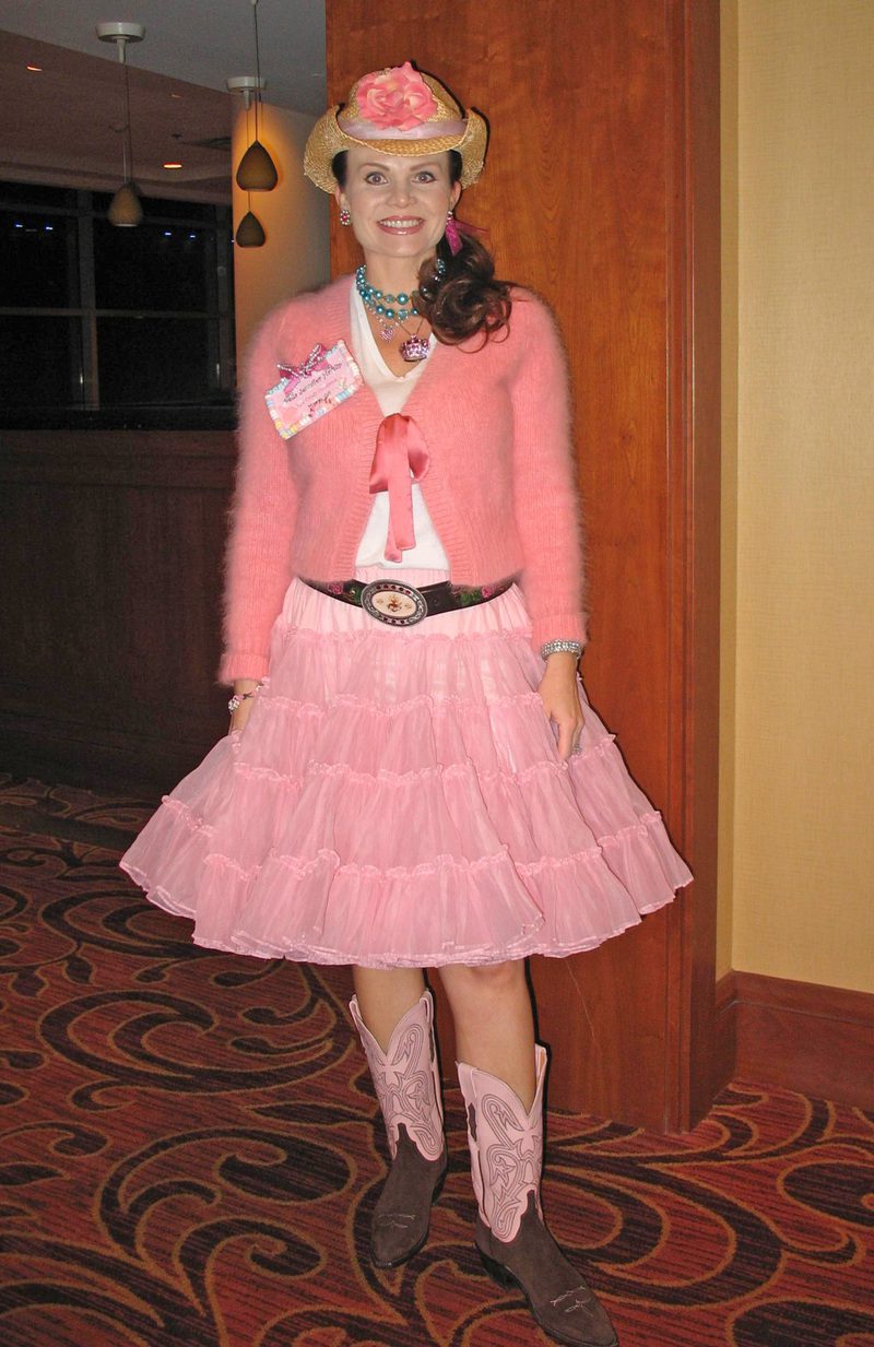 Friday night was Vendor night. Omigosh! SOOO MUCH FUN! I blew lot of money on Vendor night! hee! hee! The dress theme was "Junk Gypsy". All us ladies got dressed & froofed up for the event. Suzanne called me the "pink cupcake" ๐