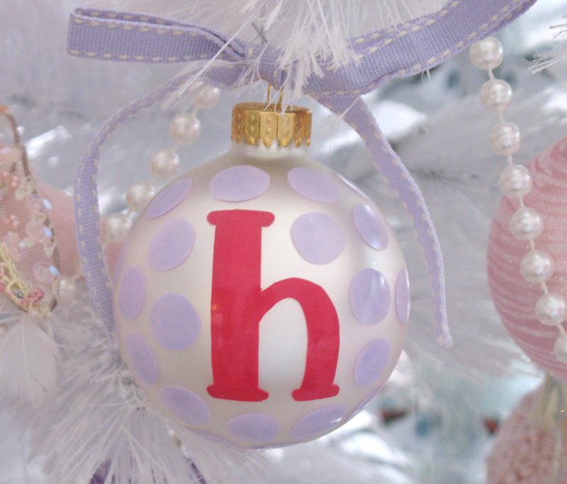 A beautiful inital Christmas ornament. The polka dots are in the SAME shade lavender as my dining room! SWEET! I just LOOOOVE it! Thank you girls!!! KISSES!!! (YES!!!! My tree is still up. hee! hee!)