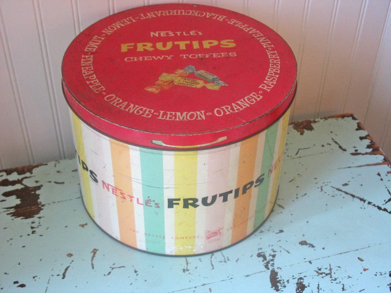 Of course I did not come home empty handed. I purchased a few fun things from Vintage General. I fell HEAD OVER HEELS in love with this vintage Nestle Frutips cannister. The sherbet colors are so fun!