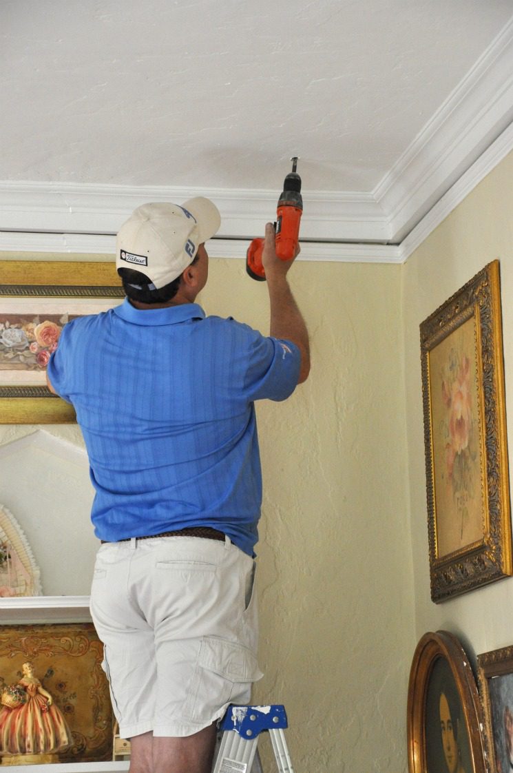 Here's an action shot of him getting ready to hang a chandelier up for me.