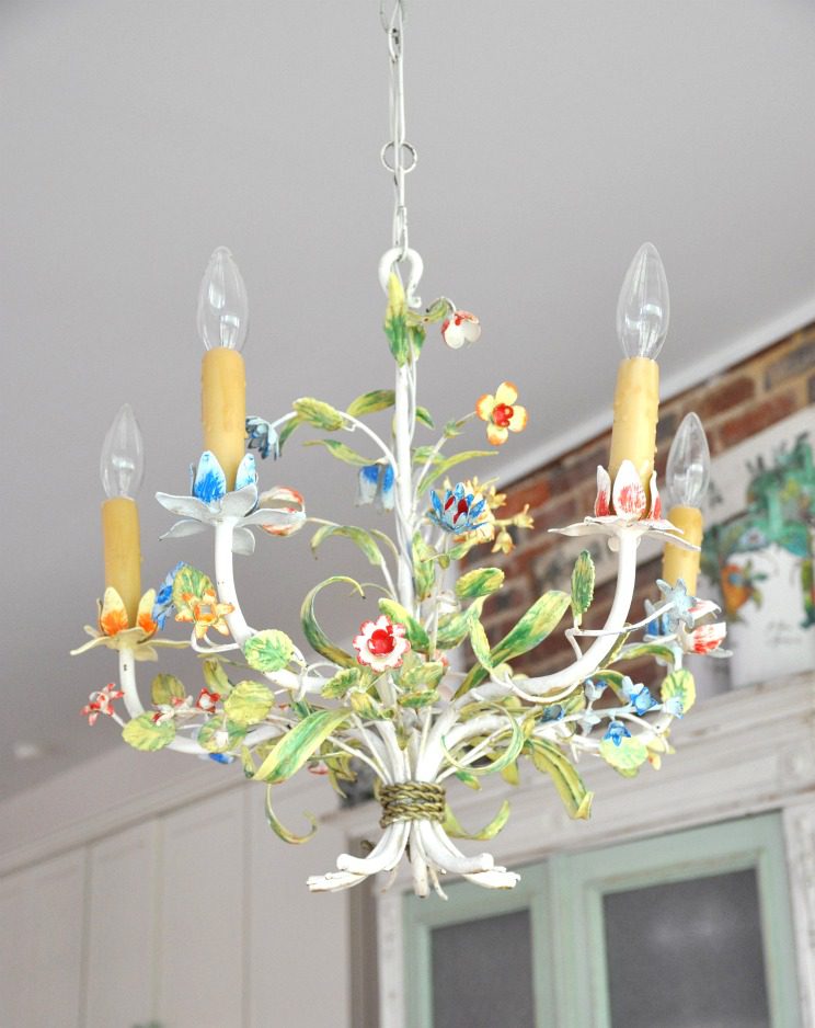That chandy, well what can I say. If I wouldn’t have bought mine a few months ago, I would have DEFINITELY wanted yours. Darn. Perfect colours for my little pastel cottage.