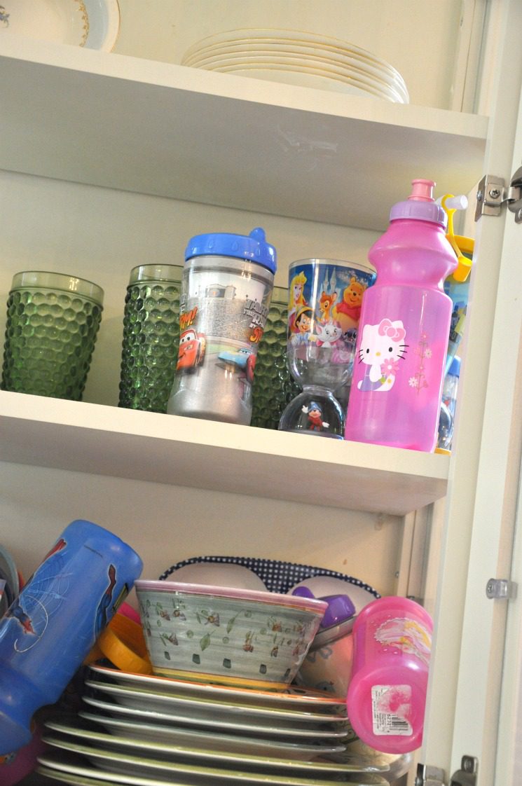 My children's sippy cups crammed in the cabinet shelves also got cleaned out and put away nicely.