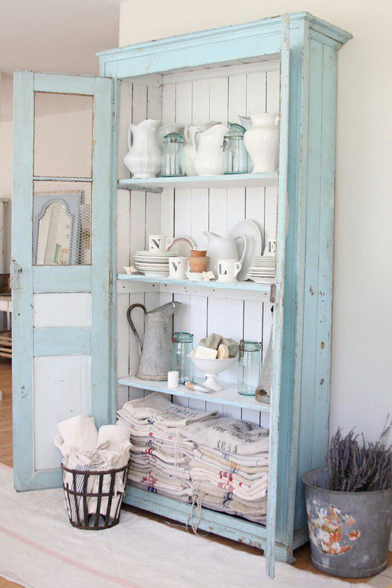 This photo inspired me to paint my green hutch into the same soft blue shade.