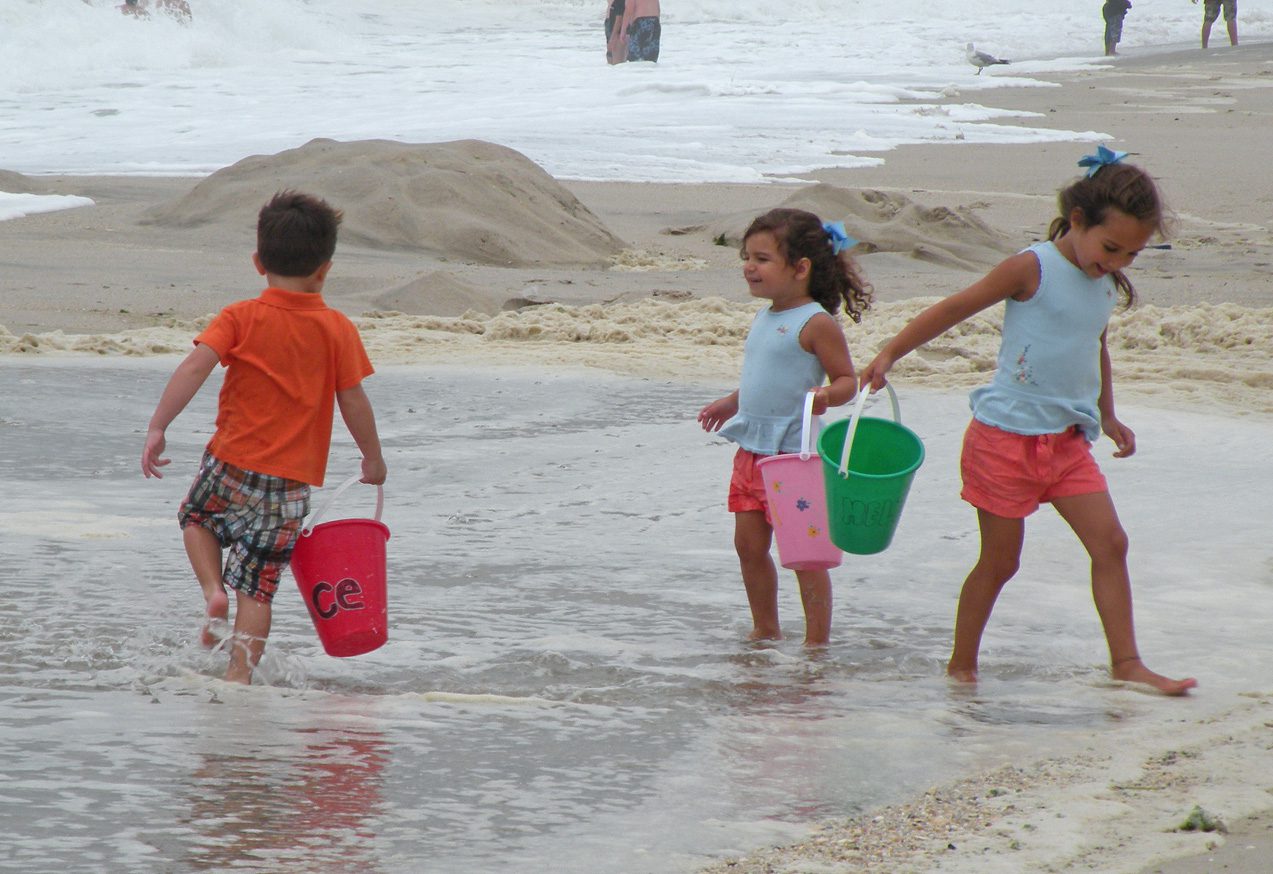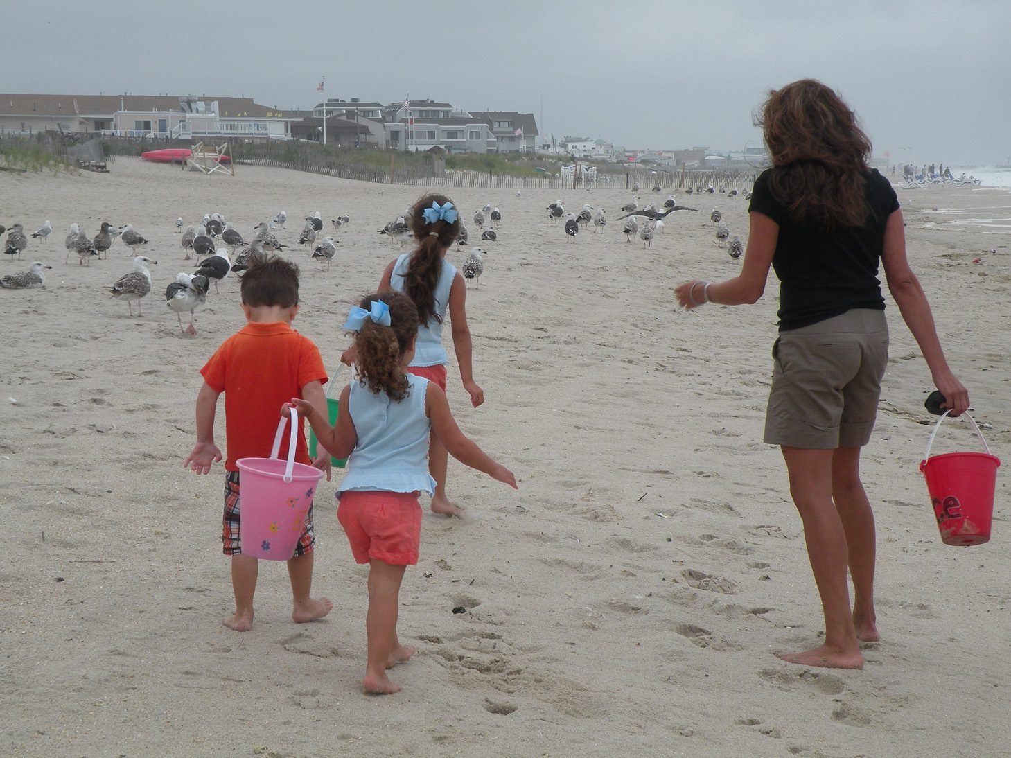 On an overcast day the children gathered seashells.