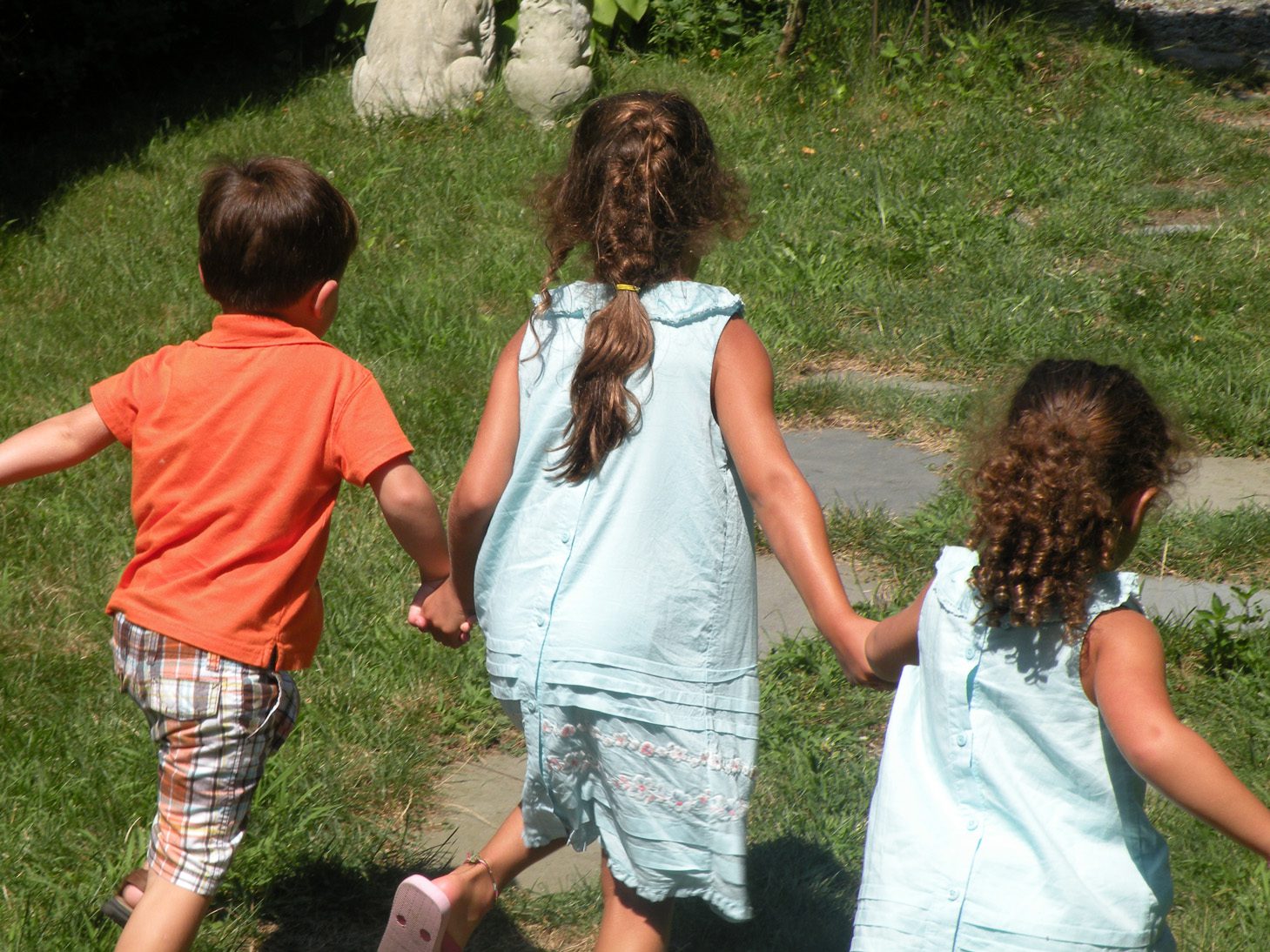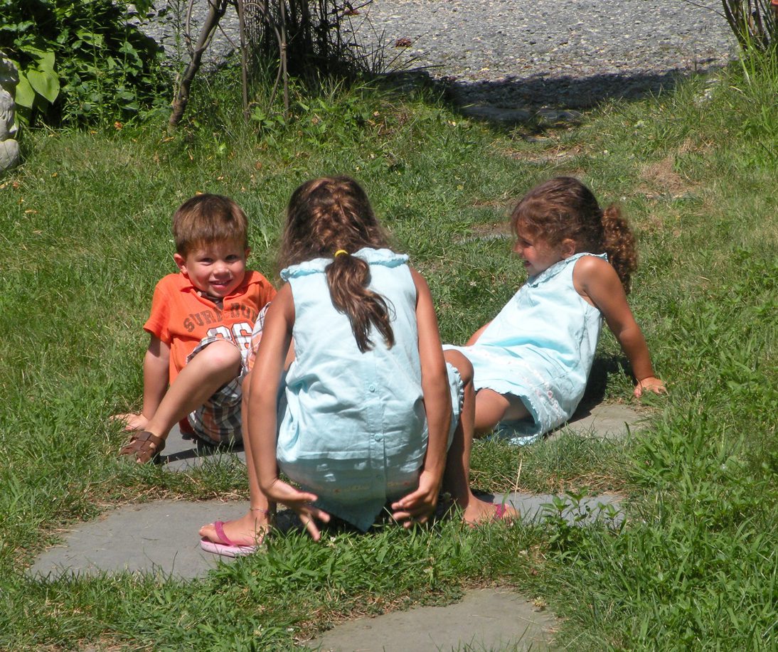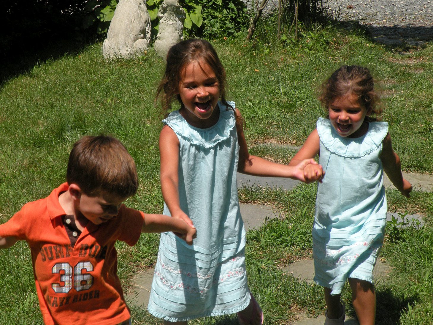 The restaurant has a sweet little grassy area for the child to entertain themselves while waiting for lunch. Grant, Grace, and Ella would hold hands and run back and forth just giggling and smiling. Than, they would take a break and play "ring around the rosey". Vivi unfortunately is not in the photo because she was back at the house taking a much needed nap!