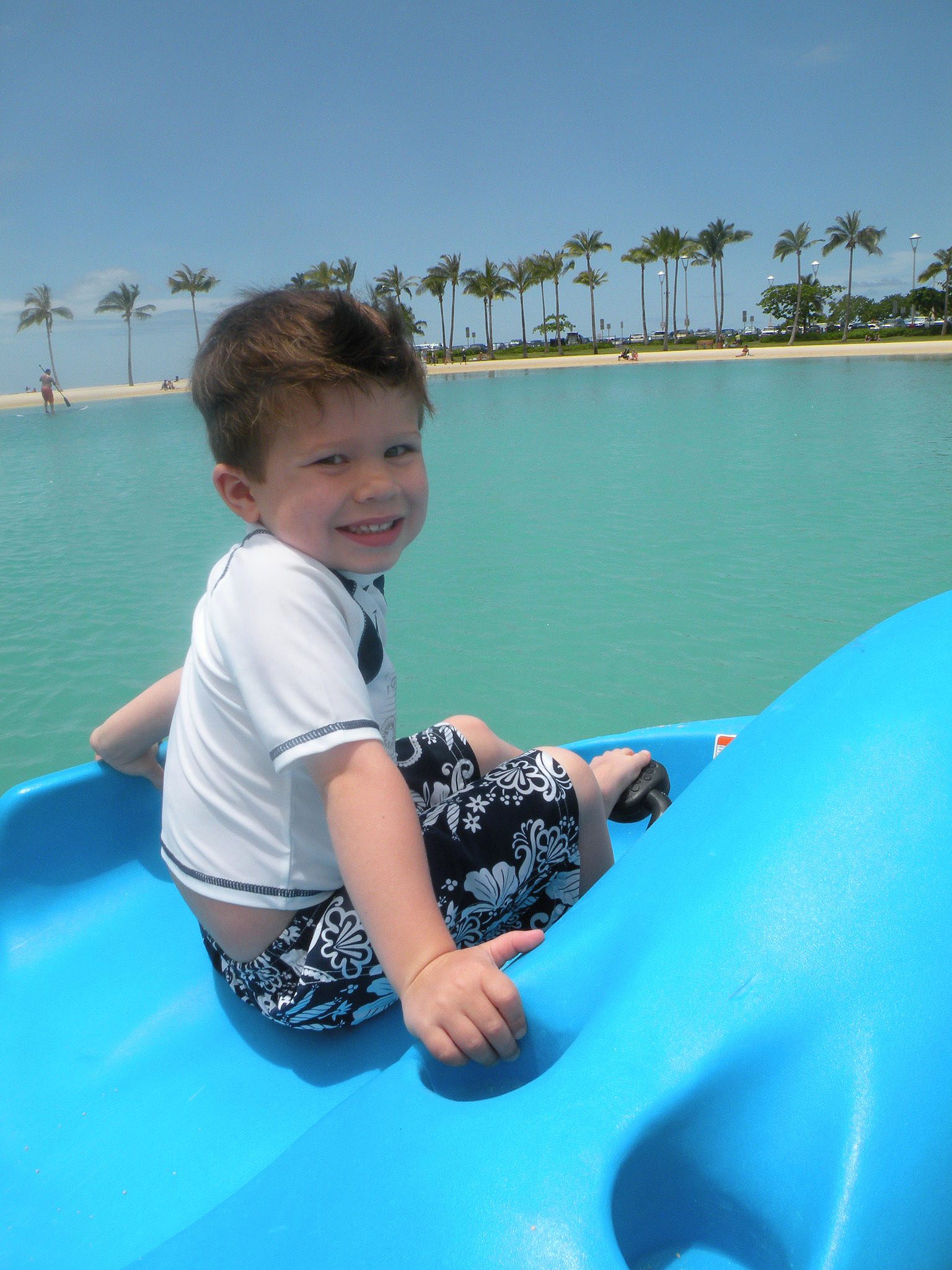 Helping Mommy paddle the paddle boat.