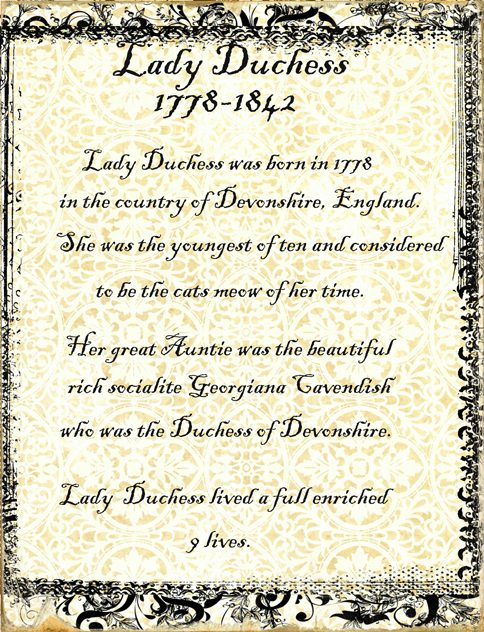 Oh Lady Duchess is adorable!! And of course being born in Devonshire, I bet she had lots of Devonshire cream as she was growing up. You must write more about her adventures!