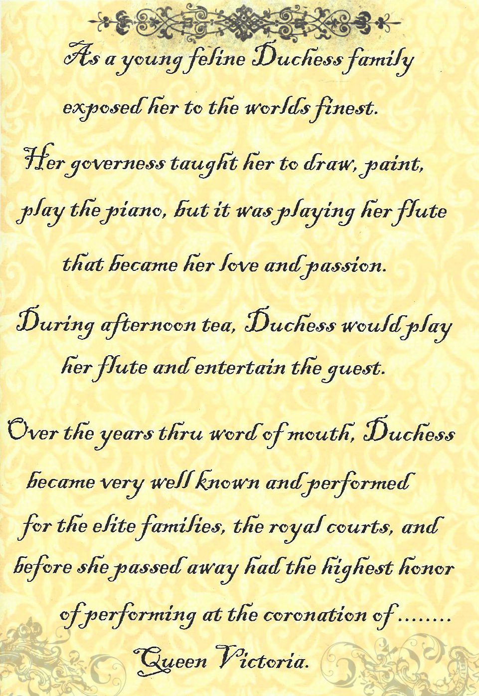 Jennifer, I love your enchanting story! I can see this as a lovely children’s book. Thank you for allowing me into the Duchess’s world!