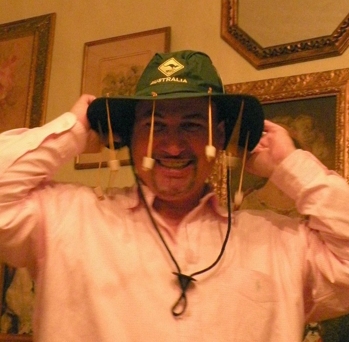 She surprised my family with gifts, and hubby was the lucky recepient of an Aussie hat that has strings of corks handing down to help keeps flies away! "WOW hunny you look real HOT in that hat!". ๐