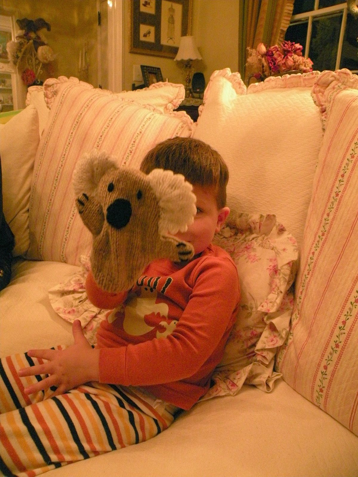 Grant and Vivi both received sweet gifts from Miss Natasha. Grant is trying out his new Koala hand puppet.