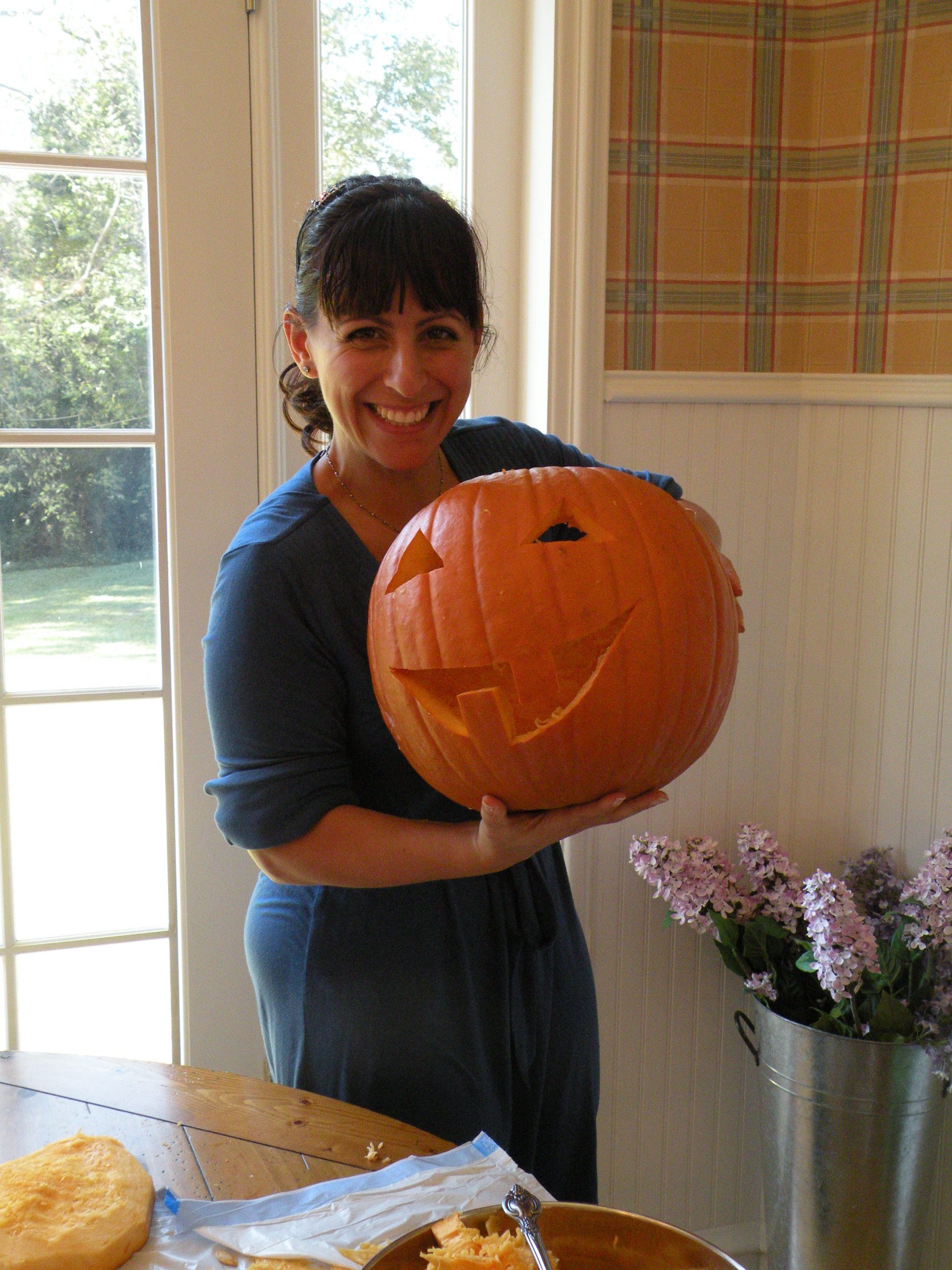 Natasha proud and showing off her pumpkin carving.
