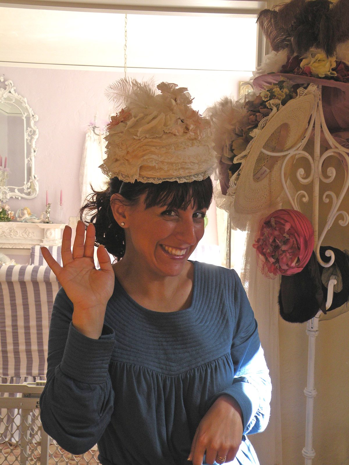 There's a new girl in town and her name is NATASHA!!!!!!!!!!!!!!!!!!! She comes from the land down UNDER!!! hee! hee! ๐ Yes! Miss Natasha had FINALLY arrived in the States and is visiting little ole me! After months and months of planning this trip it's SO surreal to finally see her in person. We of course had happy tears when we met at the airport. Just a flood of happy emotions. Natasha is sooo ADORABLE & CUTE in person and just full of fun, spunk, and energy! Look how adorable she is modeling the hat I purchased from Miss Heather.